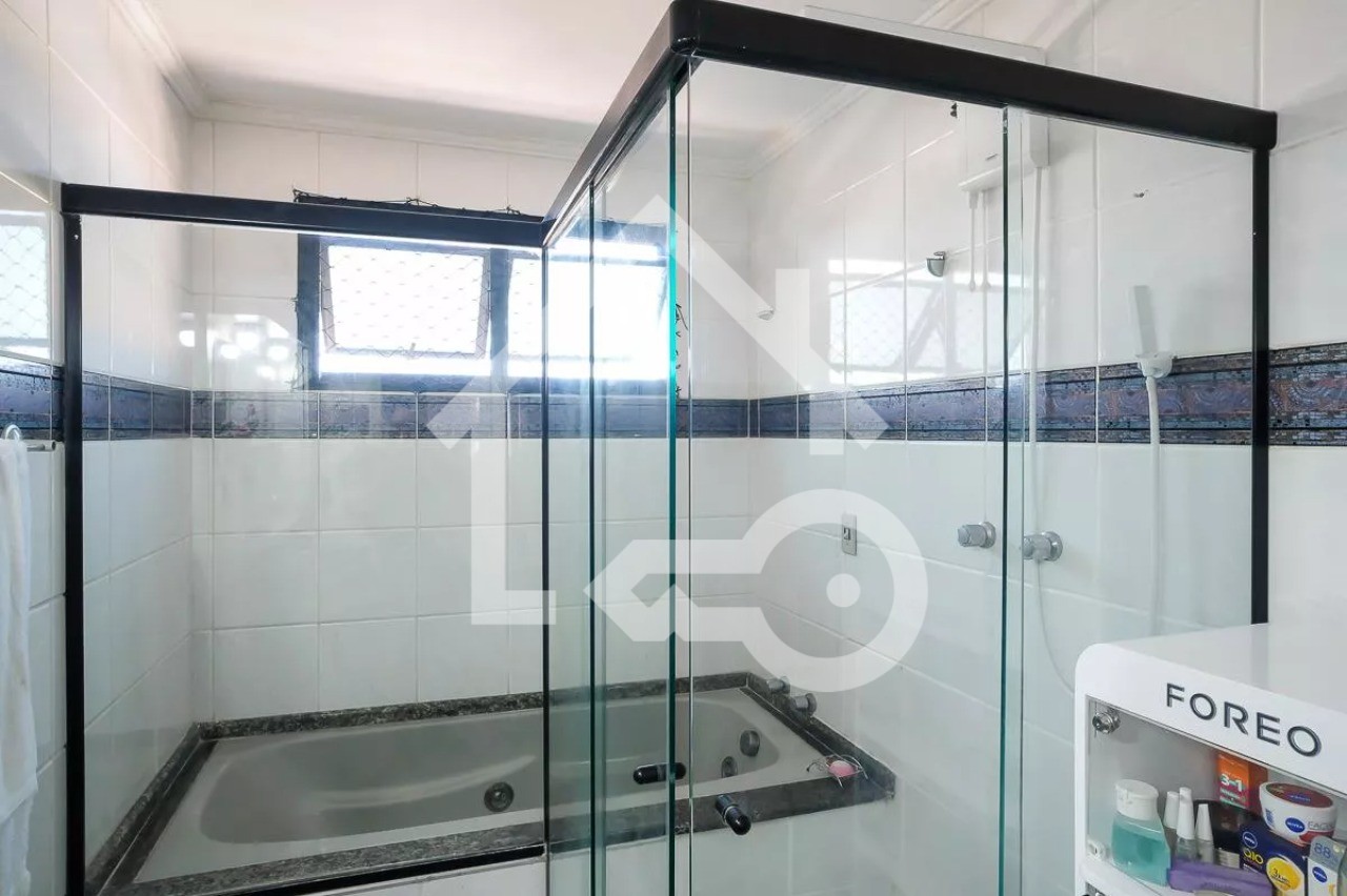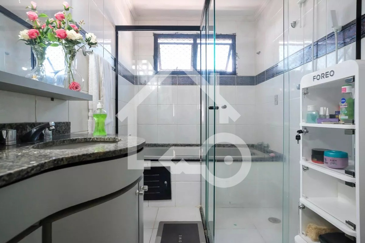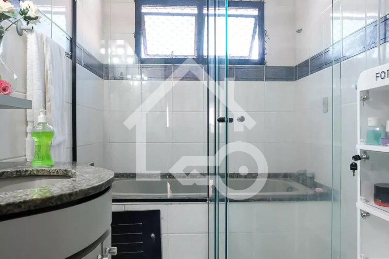 O imóvel possui 3 quartos, sendo 1 suíte com varanda e banheira, 3 banheiros e 2 vagas de garagem.