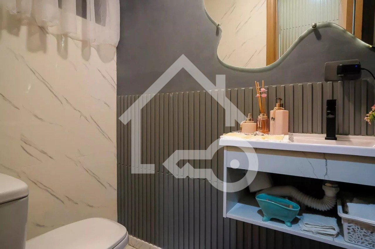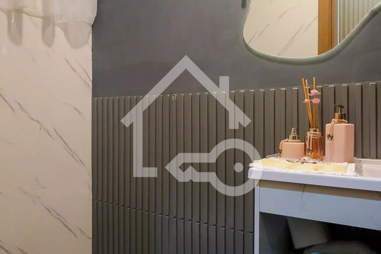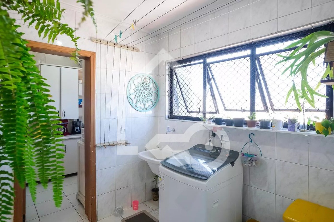 O imóvel possui 3 quartos, sendo 1 suíte com varanda e banheira, 3 banheiros e 2 vagas de garagem.