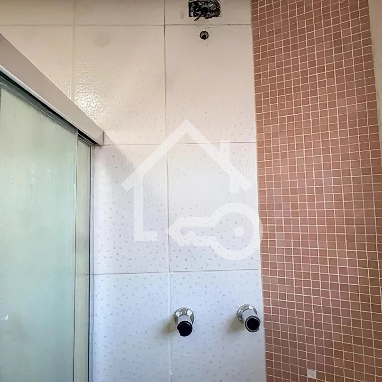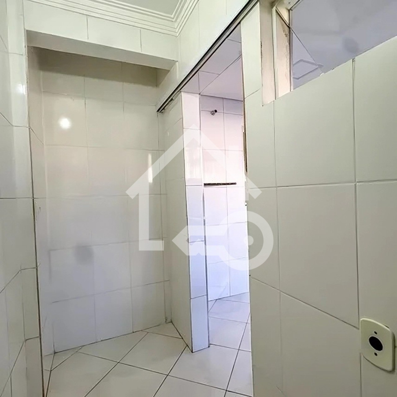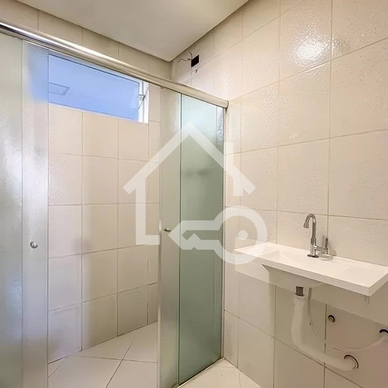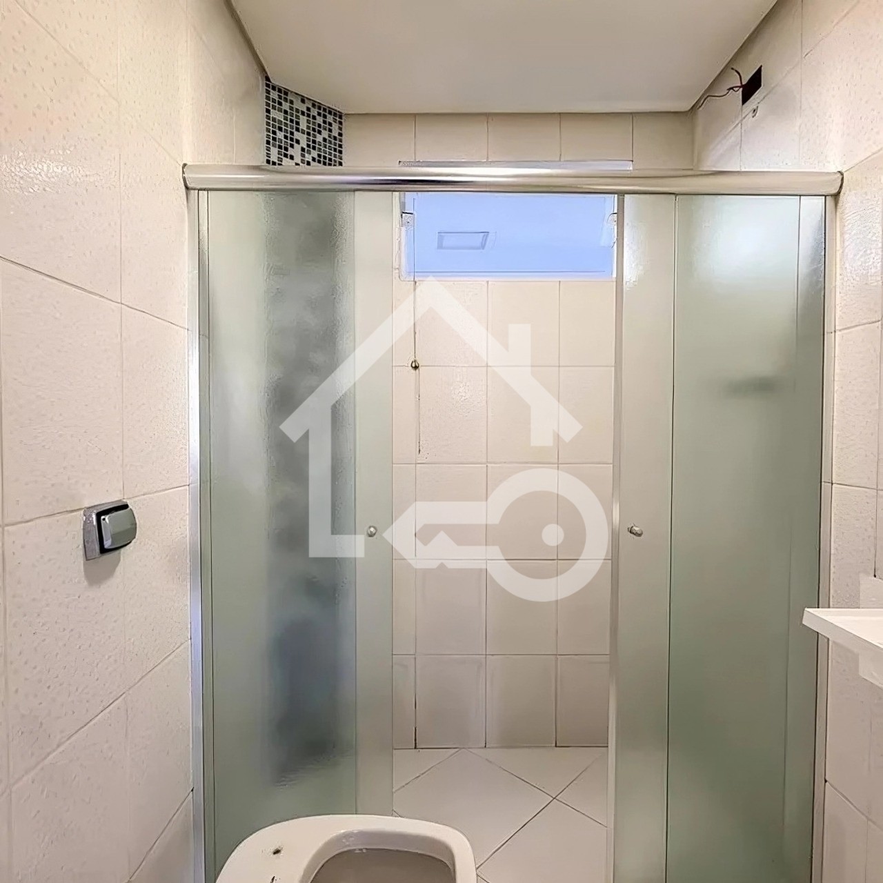 Banheiro com box em vidro.
