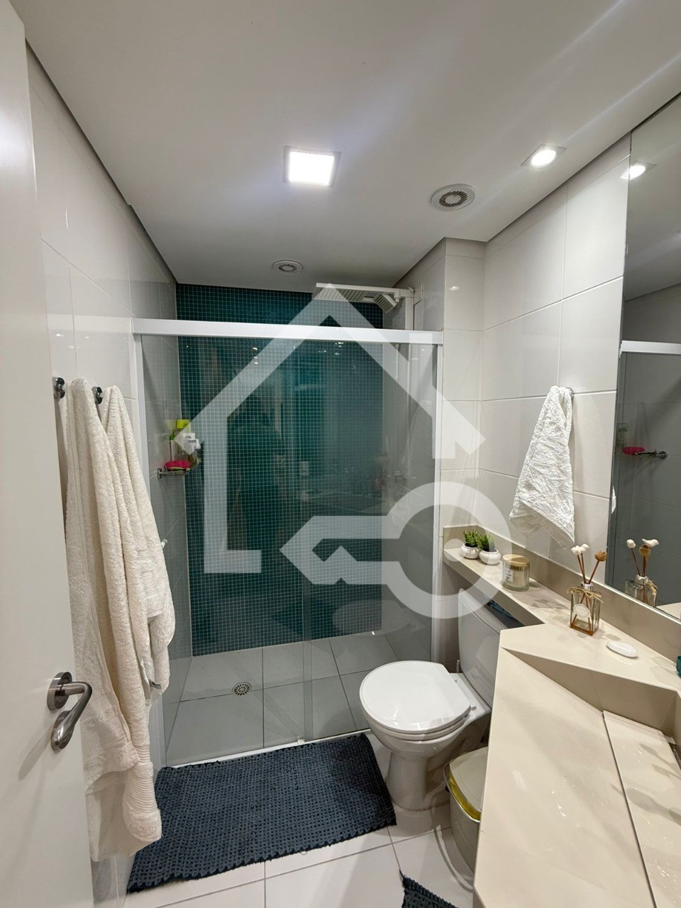 Banheiro com box em vidro.