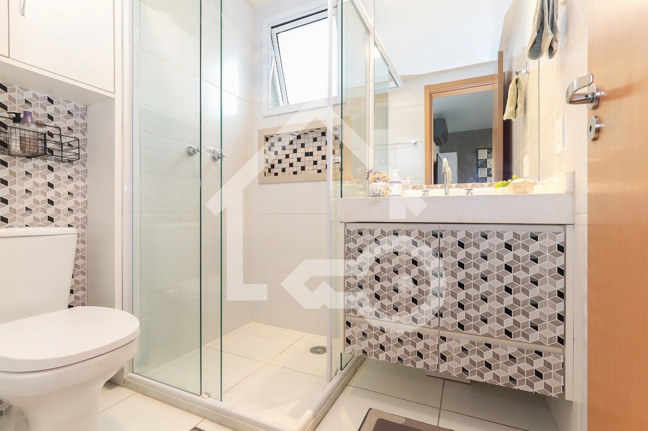 Banheiros com box em vidro.