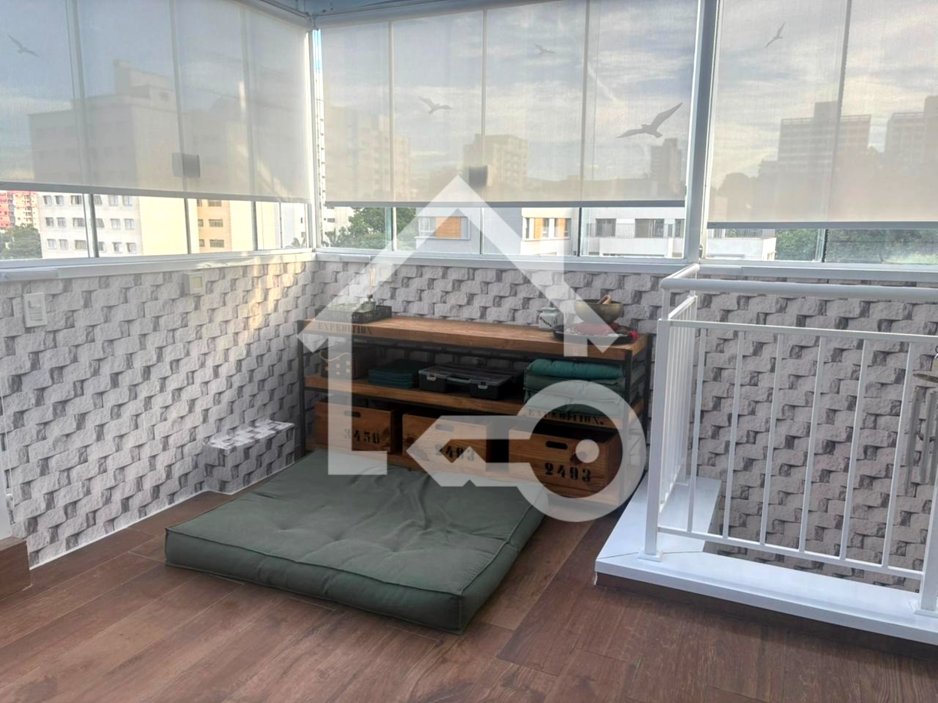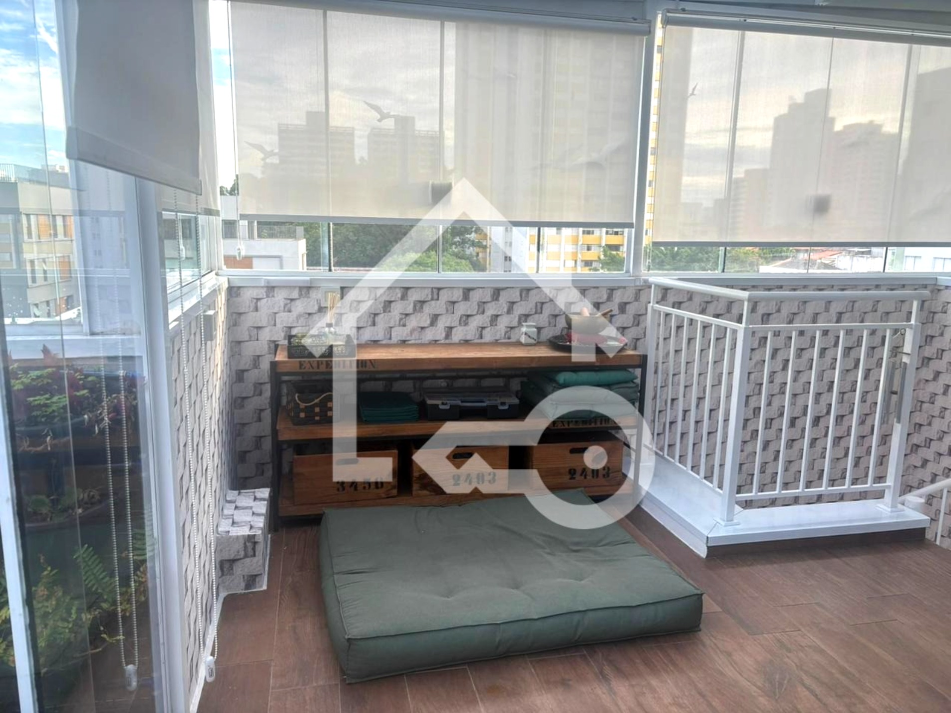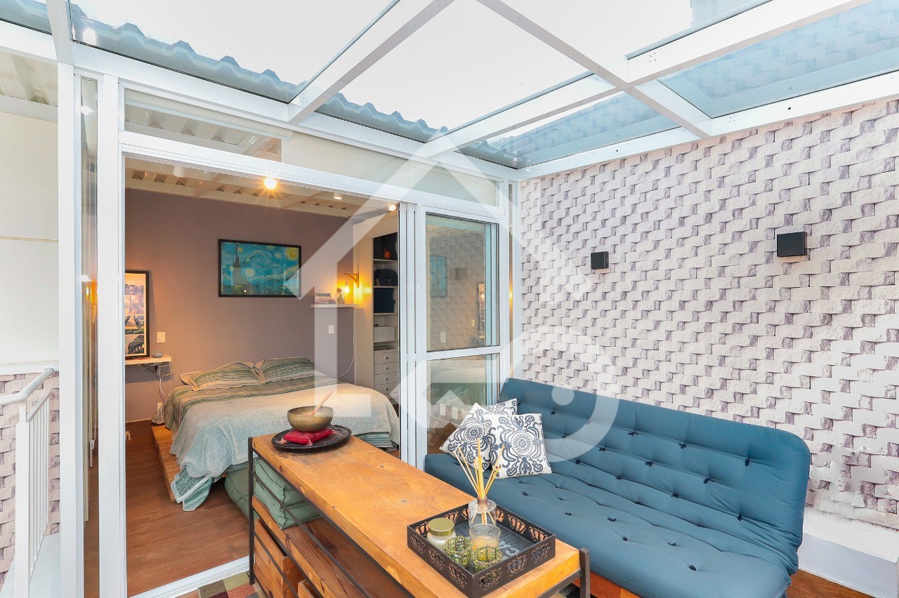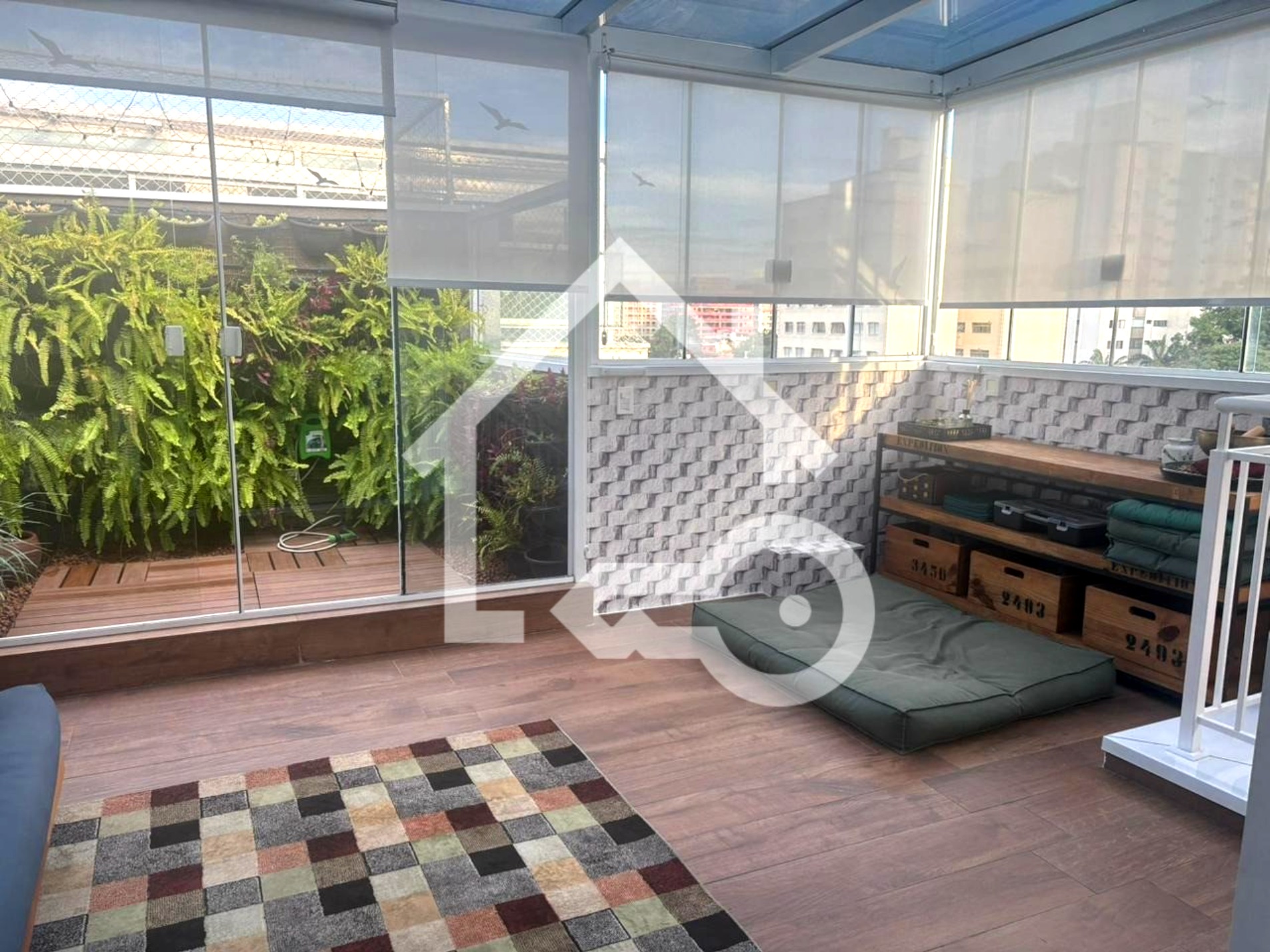 Varanda com fechamento em vidro.