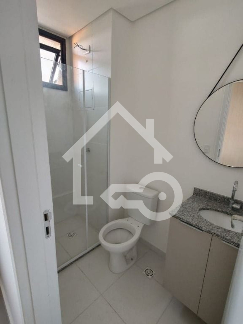 Banheiro com box em vidro.