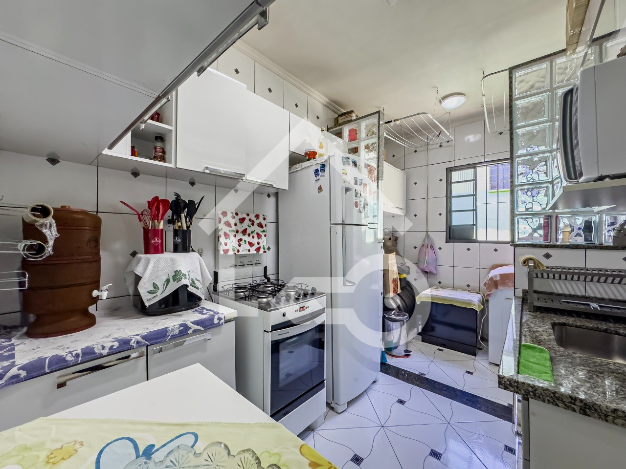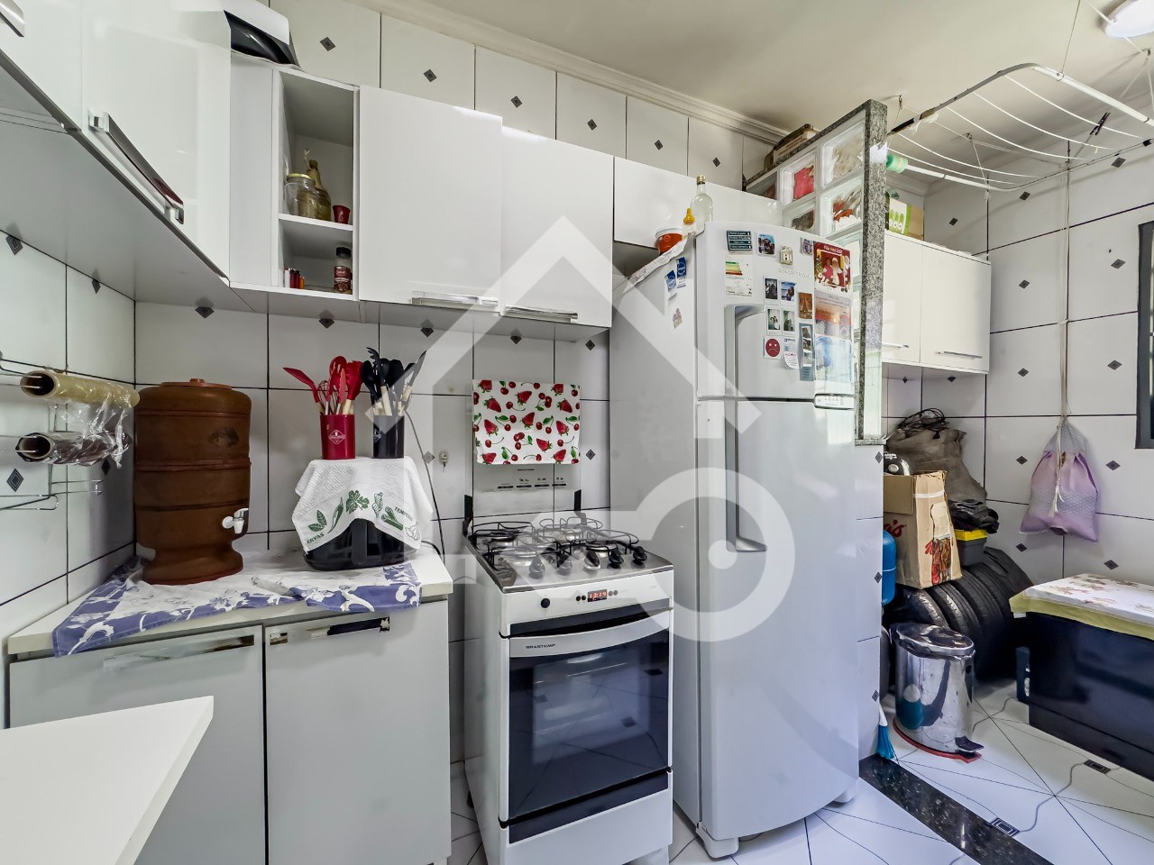 Cozinha com armário.