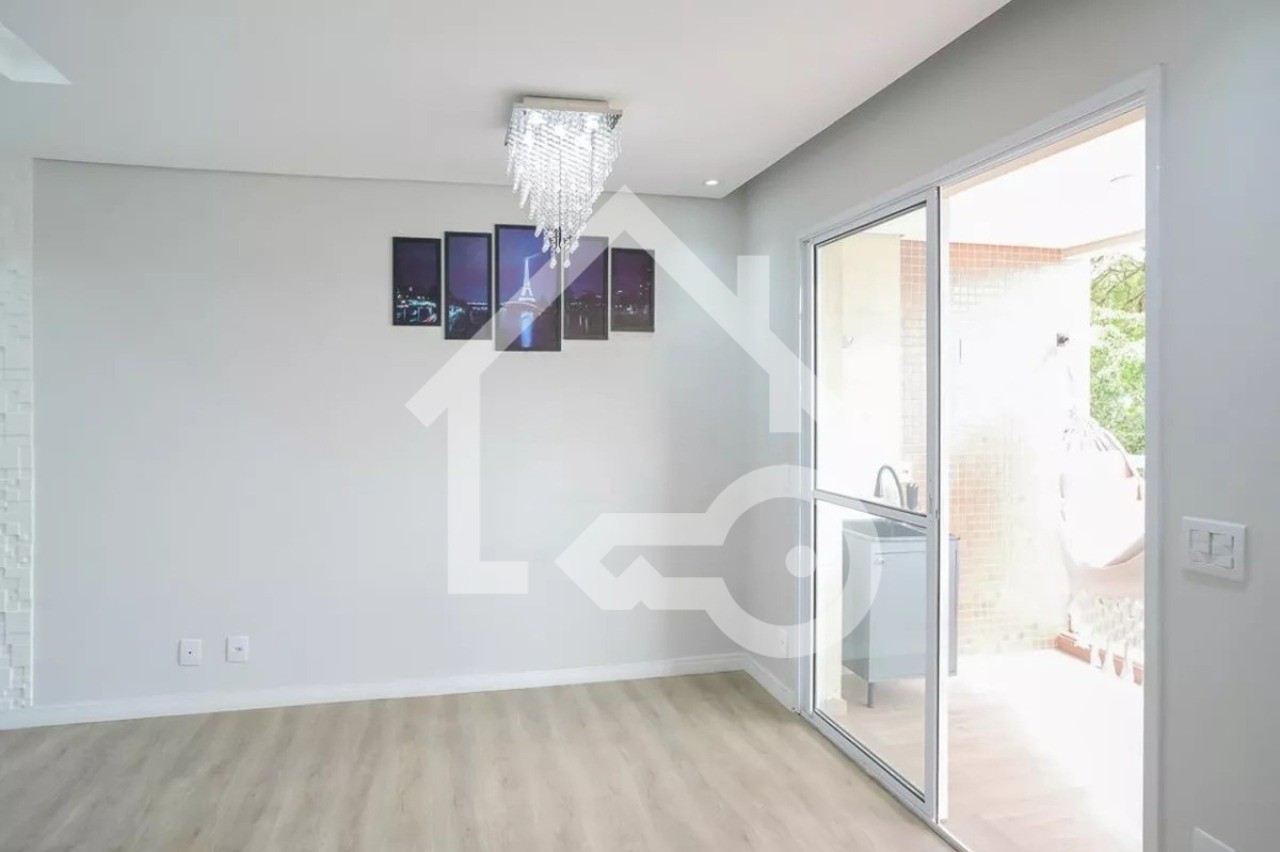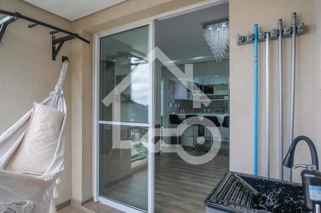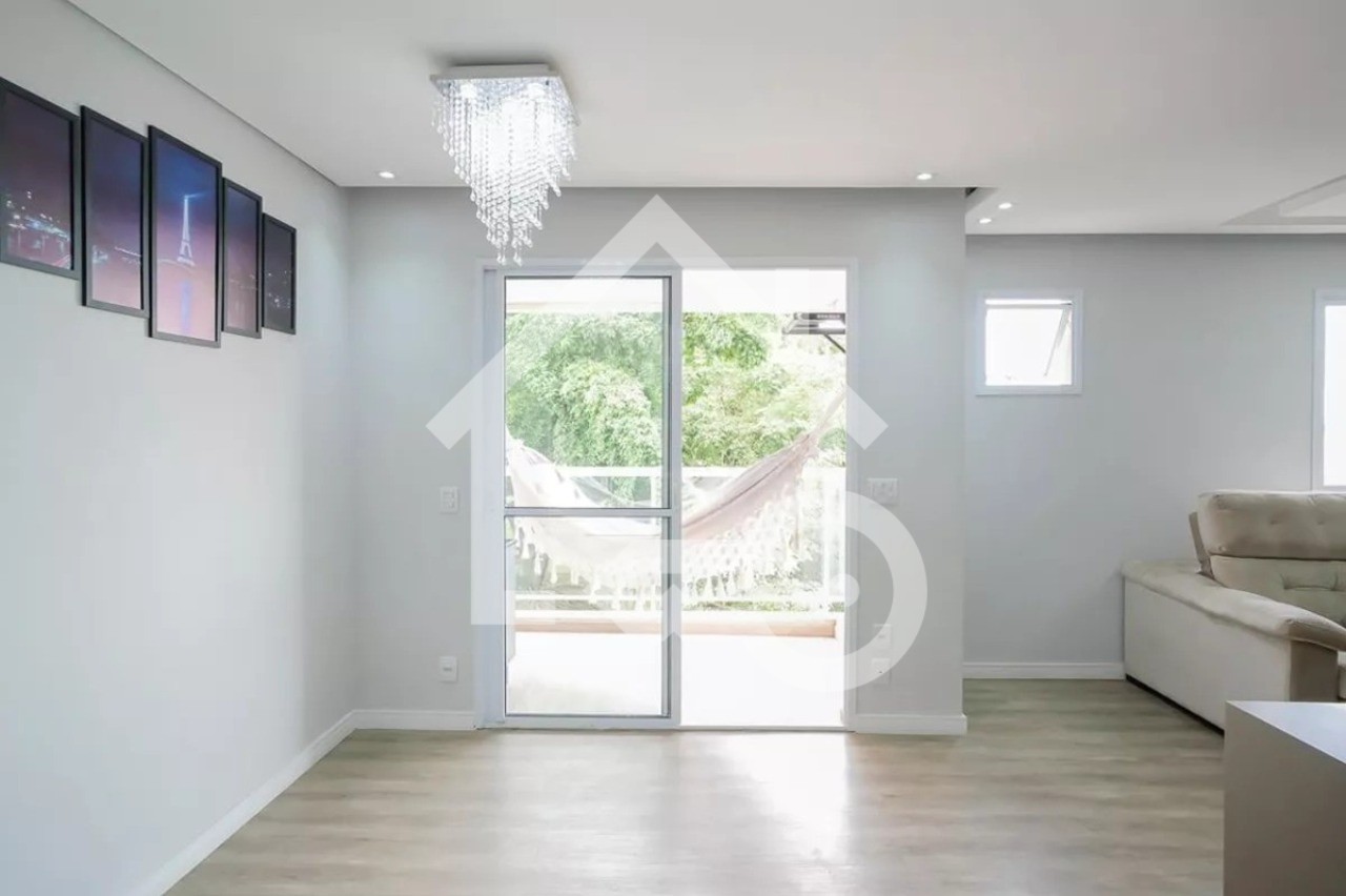 Sala com sacada gourmet.