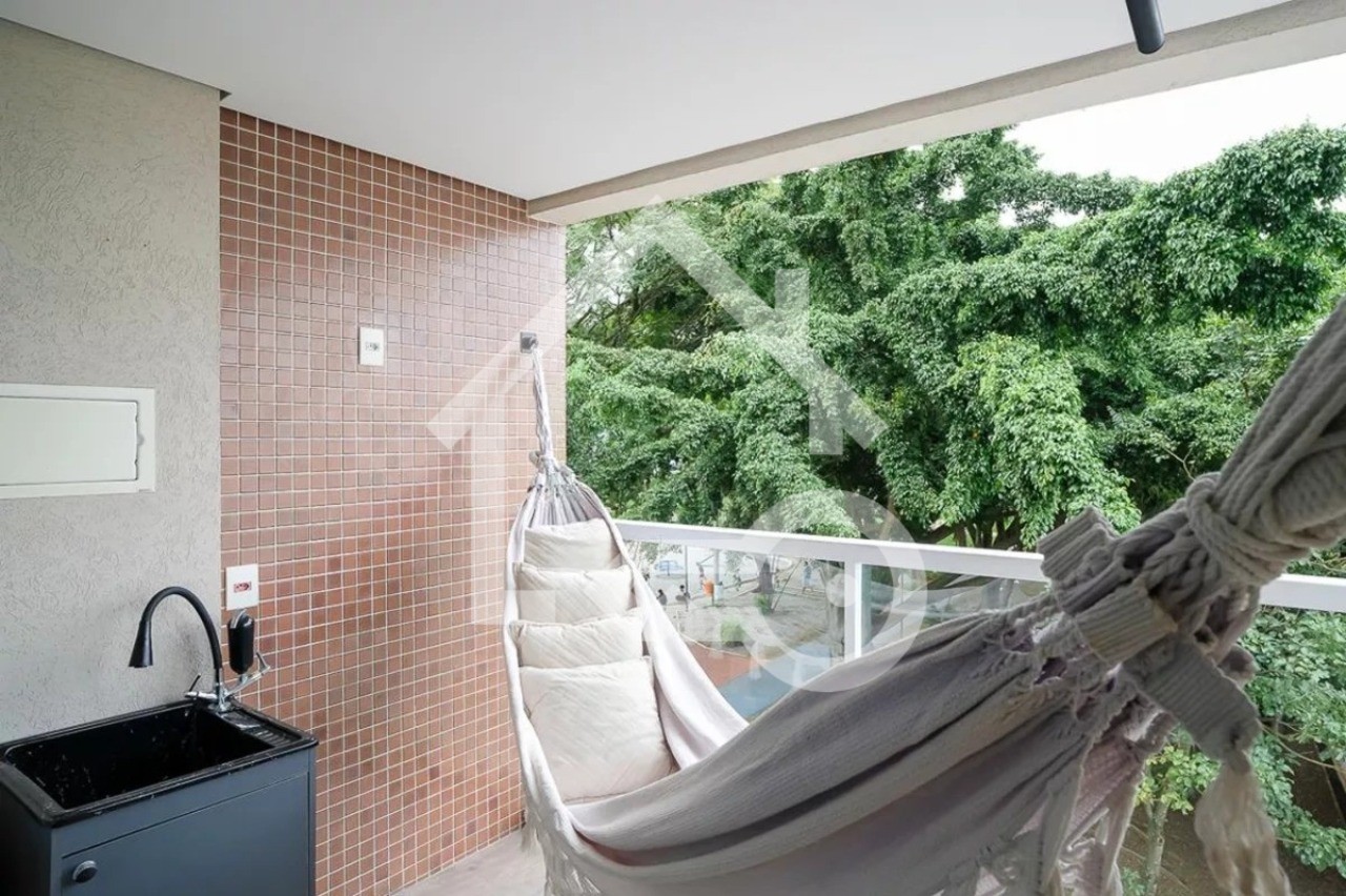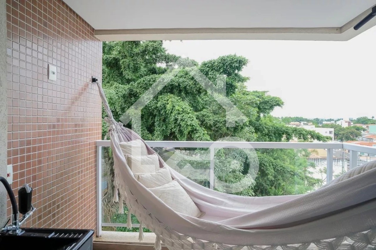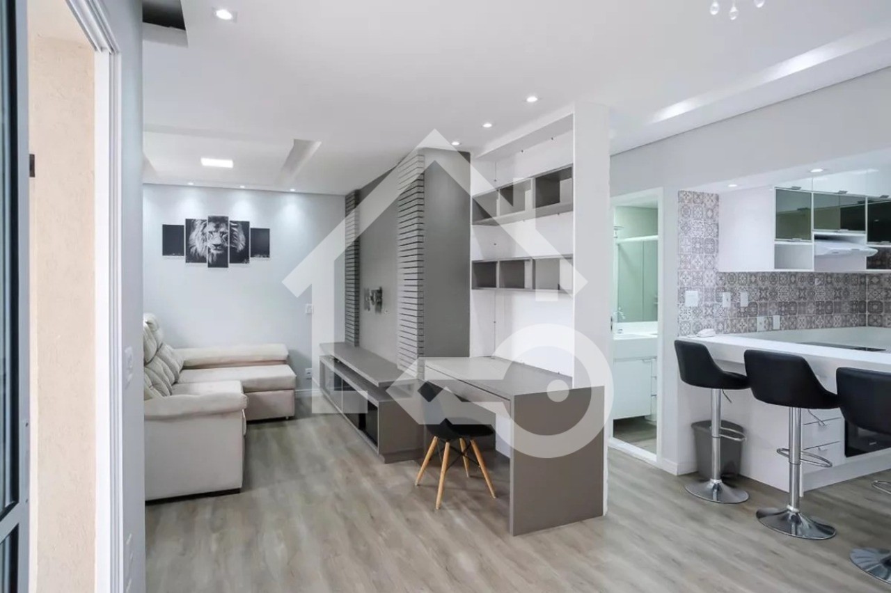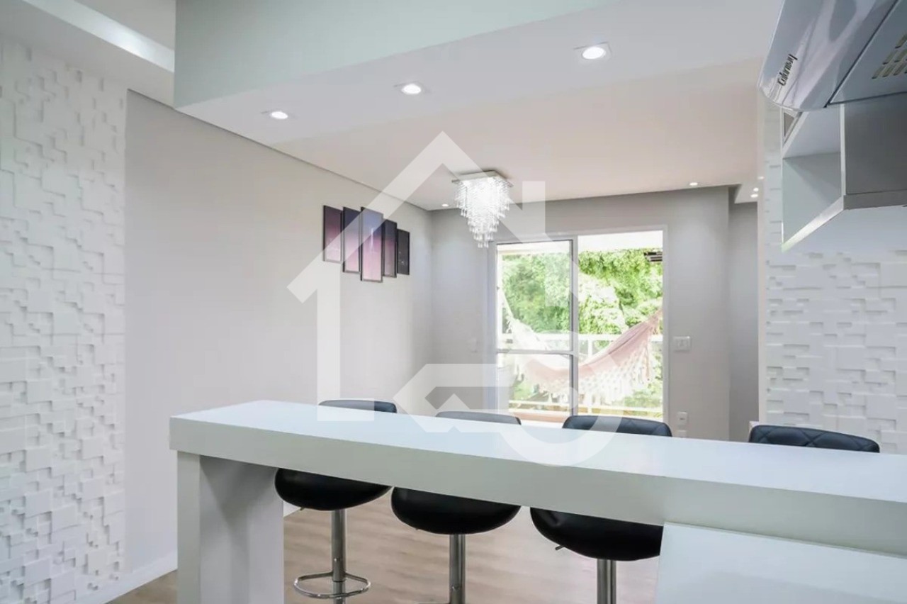 Sala com sacada gourmet.