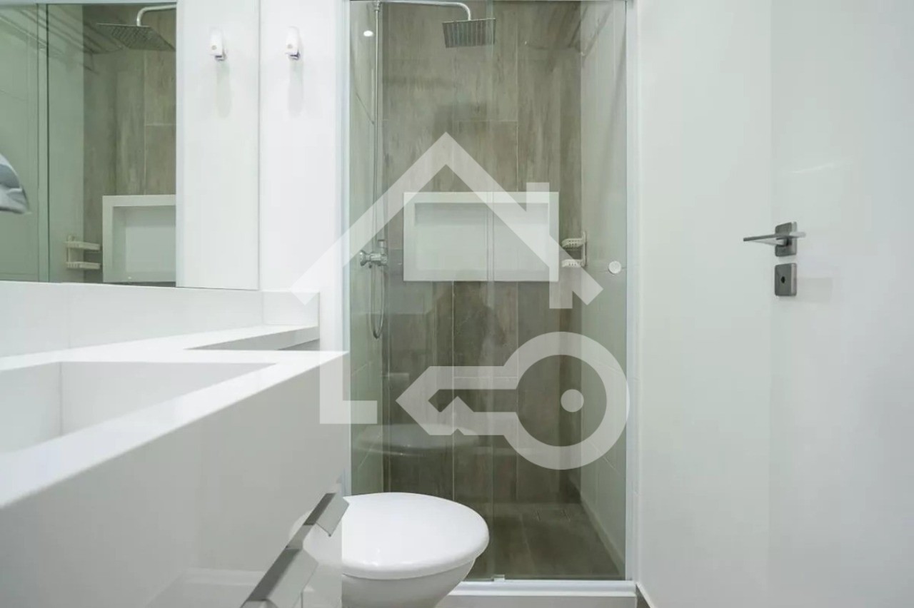 Banheiros com box em vidro.