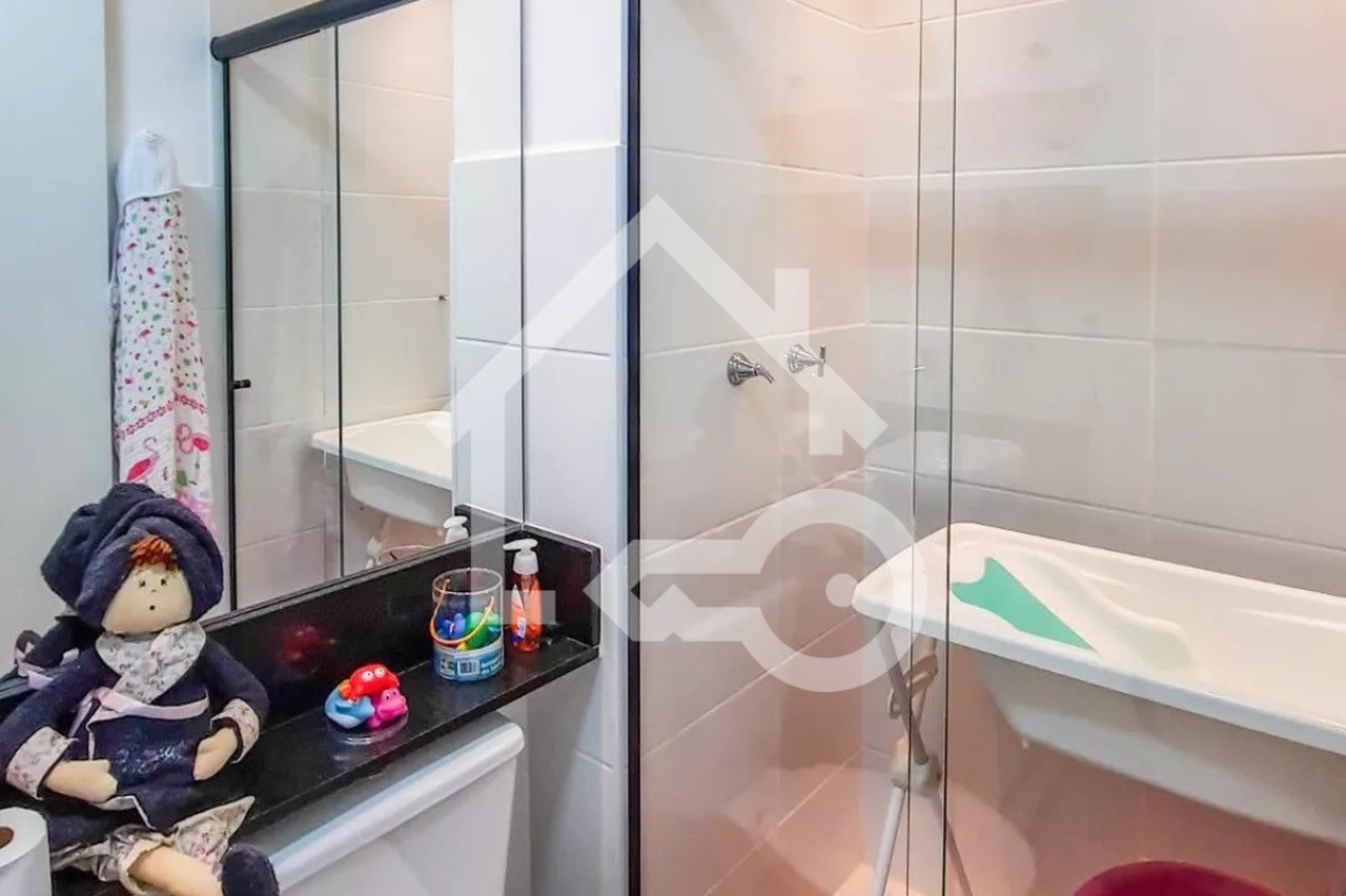 O imóvel possui 2 quartos, sendo 1 suíte, 2 banheiros e 1 vaga de garagem.