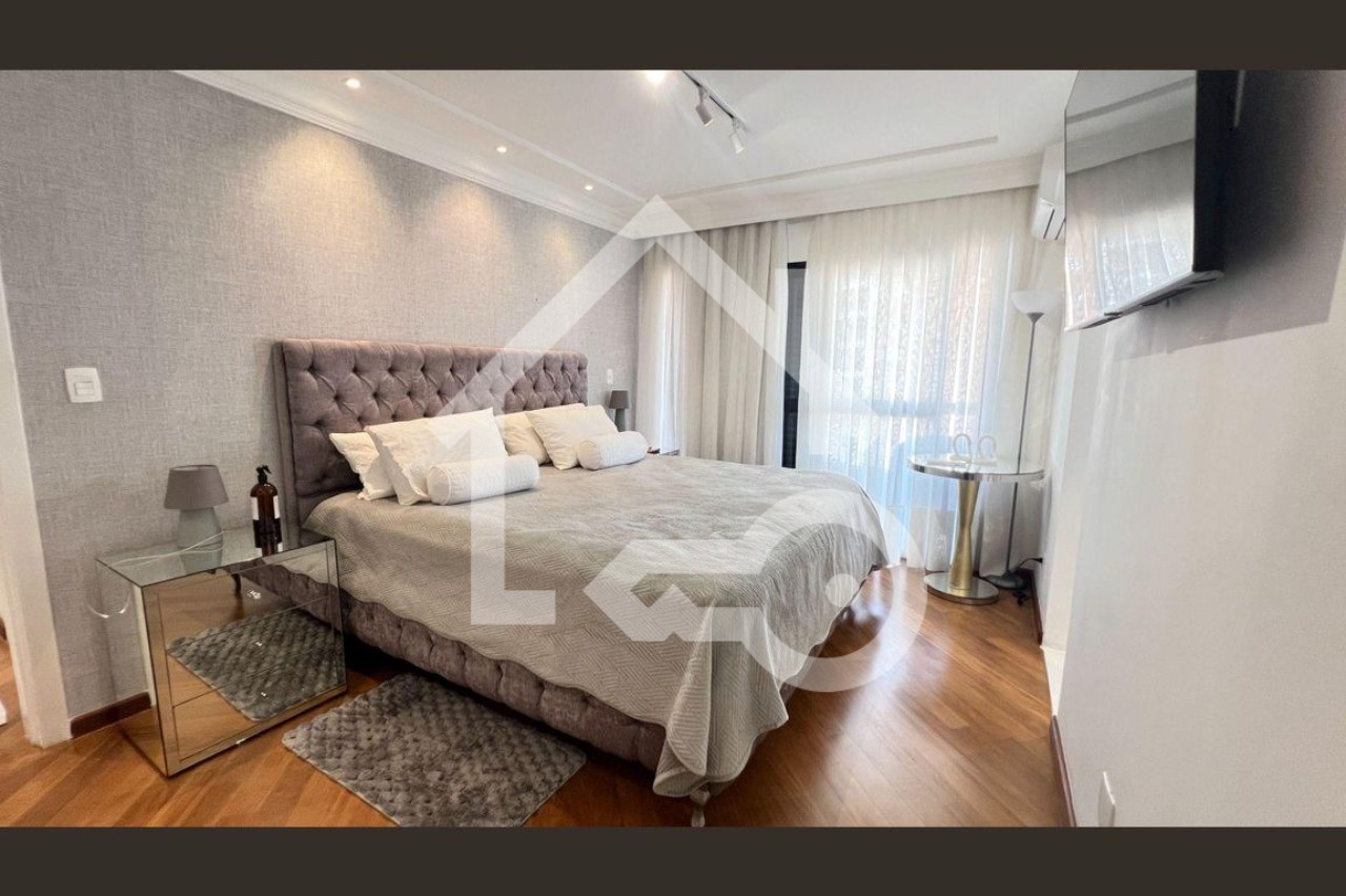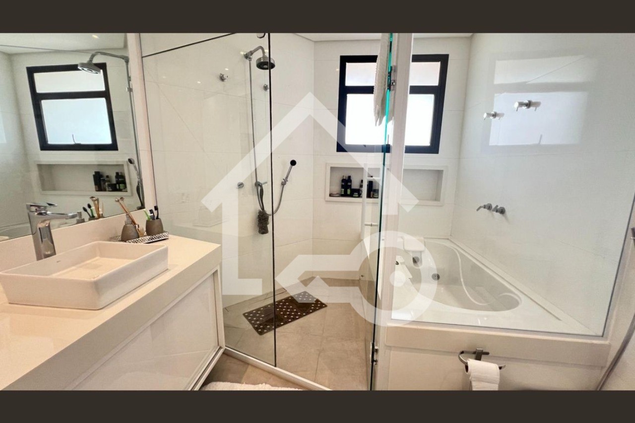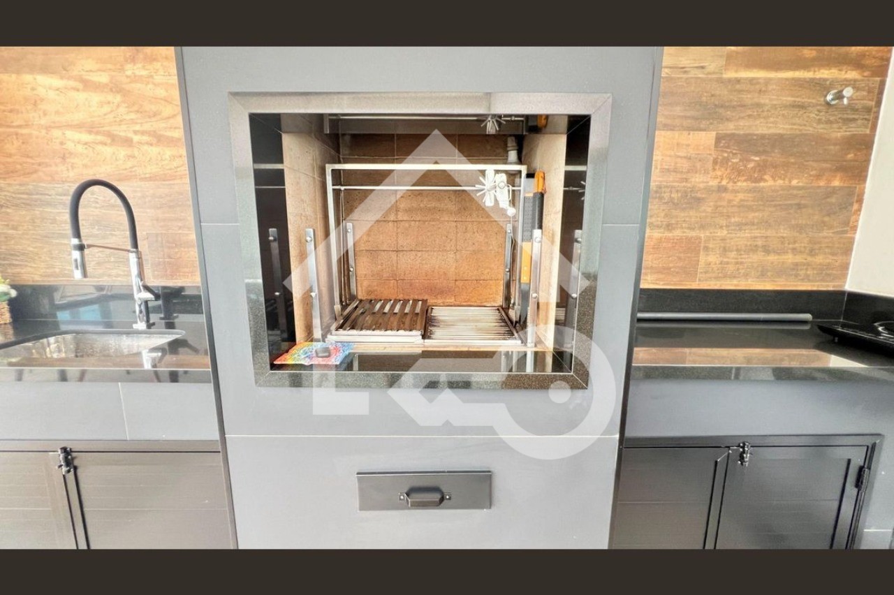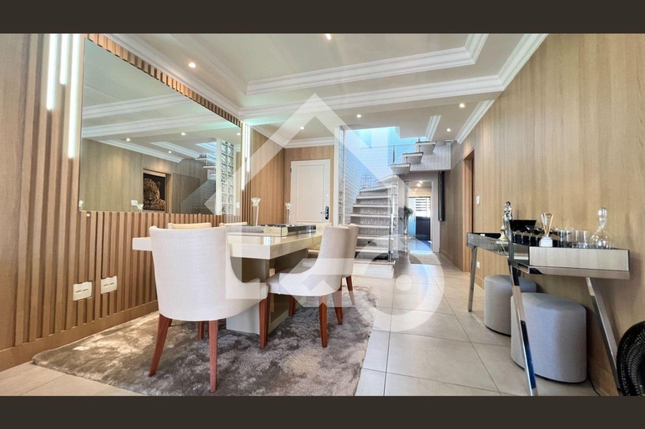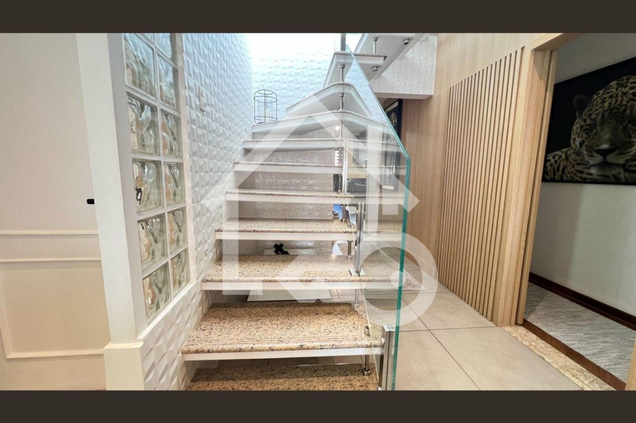 O imóvel possui 4 quartos, sendo todos suítes, 6 banheiros e 4 vagas de garagem.