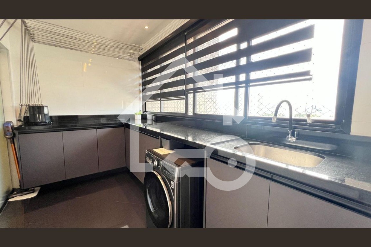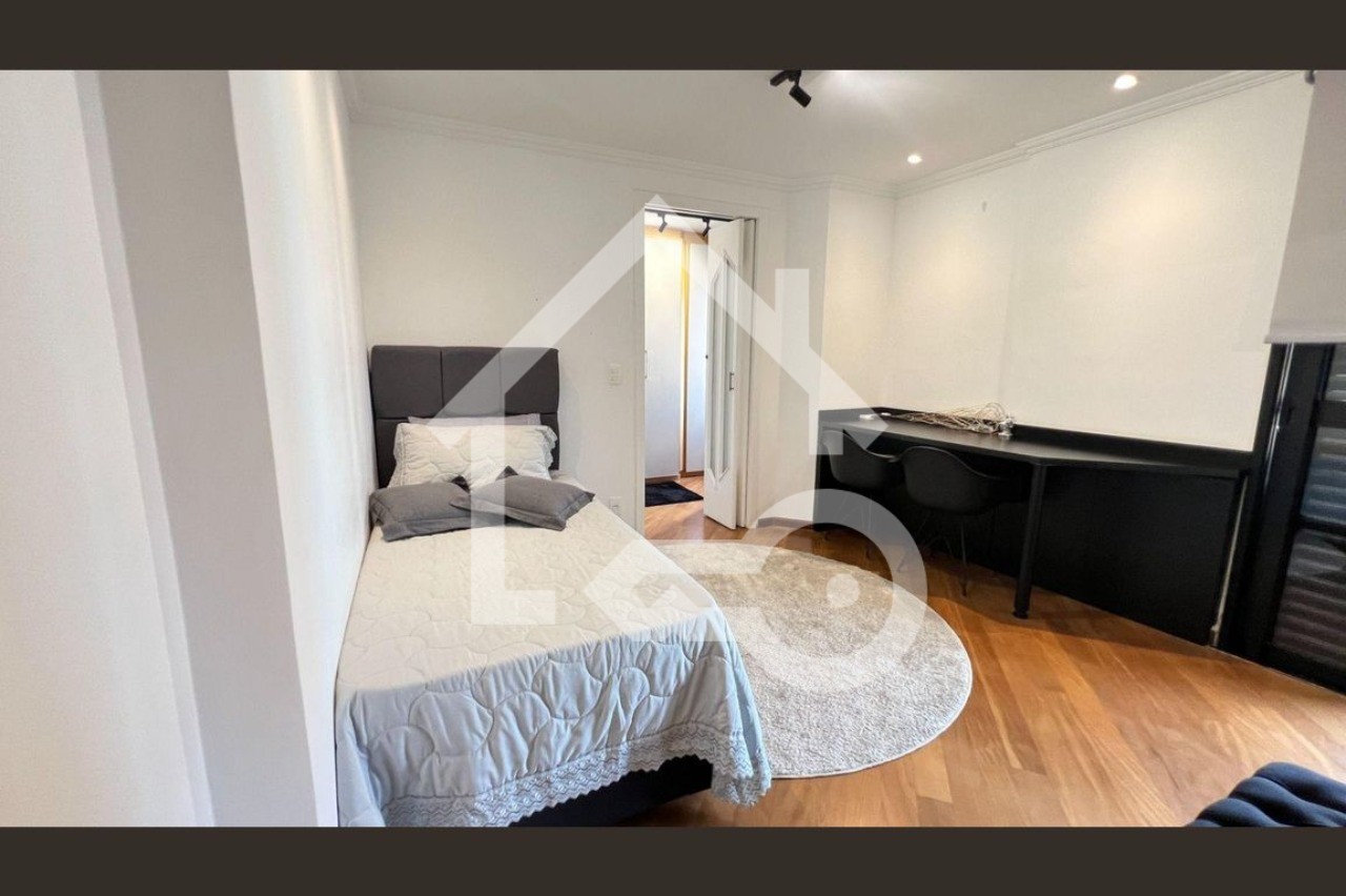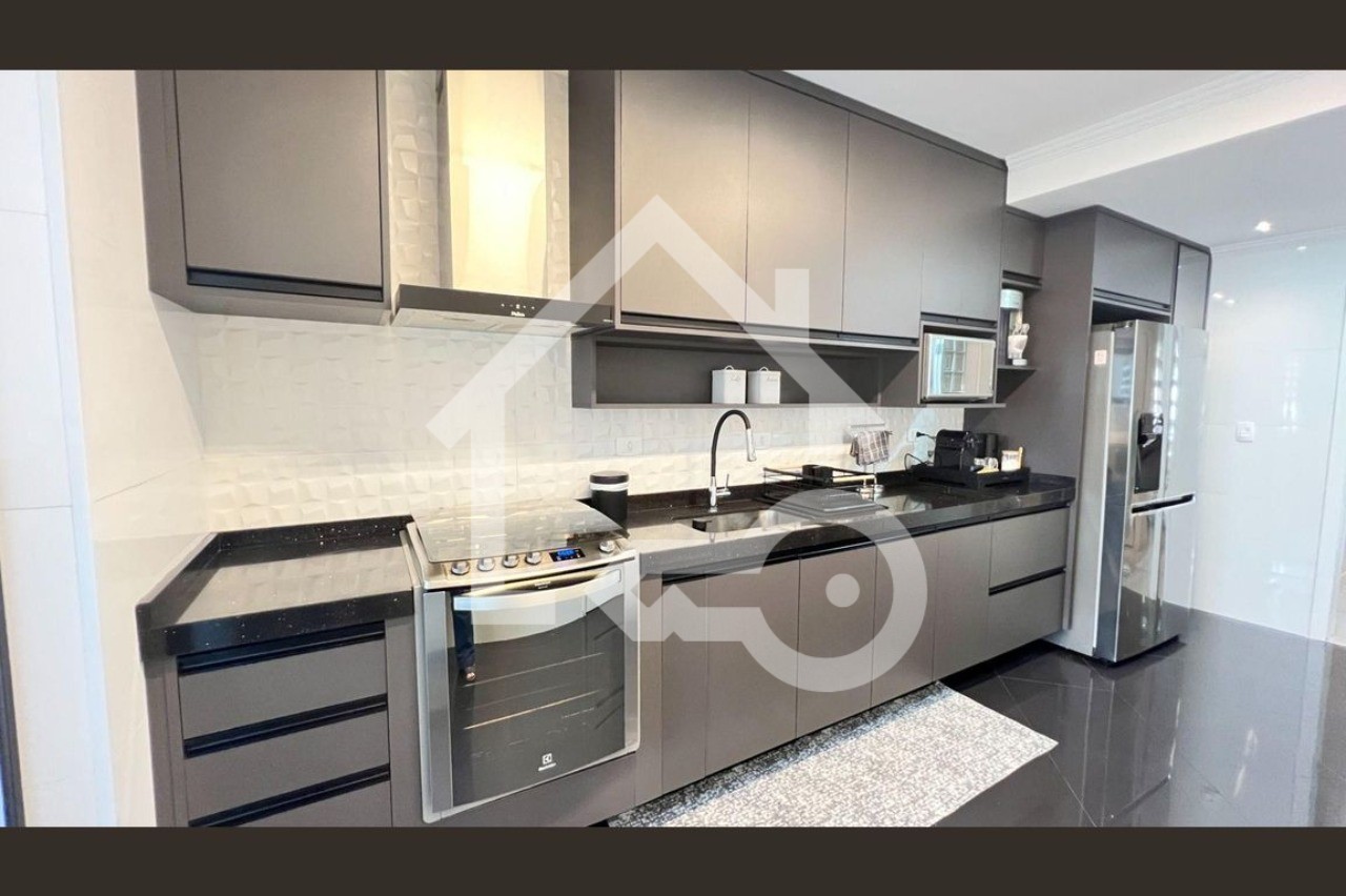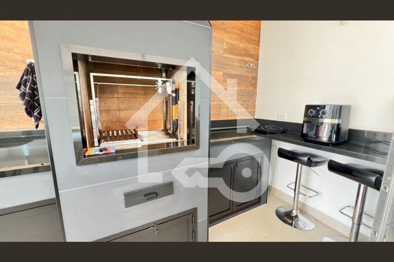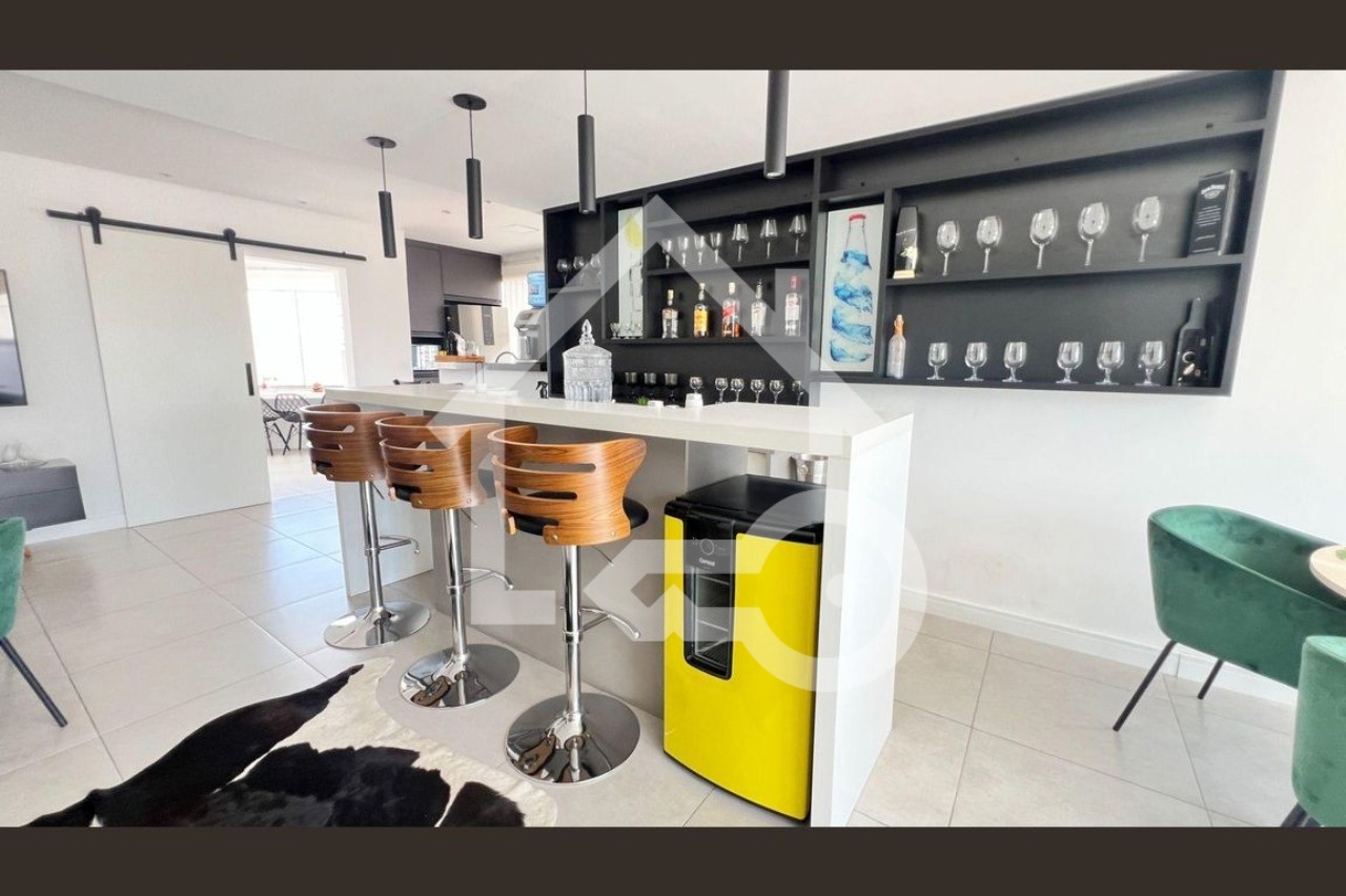 O imóvel possui 4 quartos, sendo todos suítes, 6 banheiros e 4 vagas de garagem.