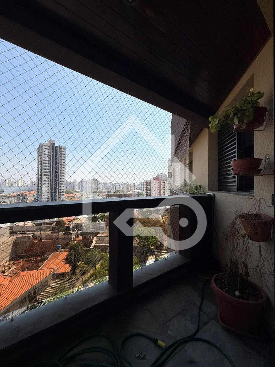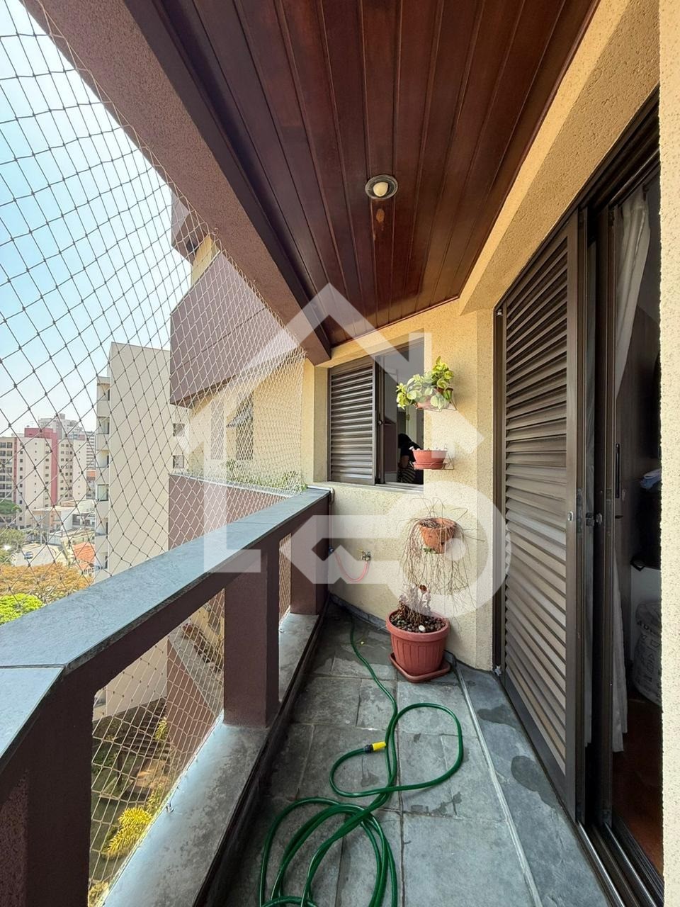 Varanda com telas de proteção.