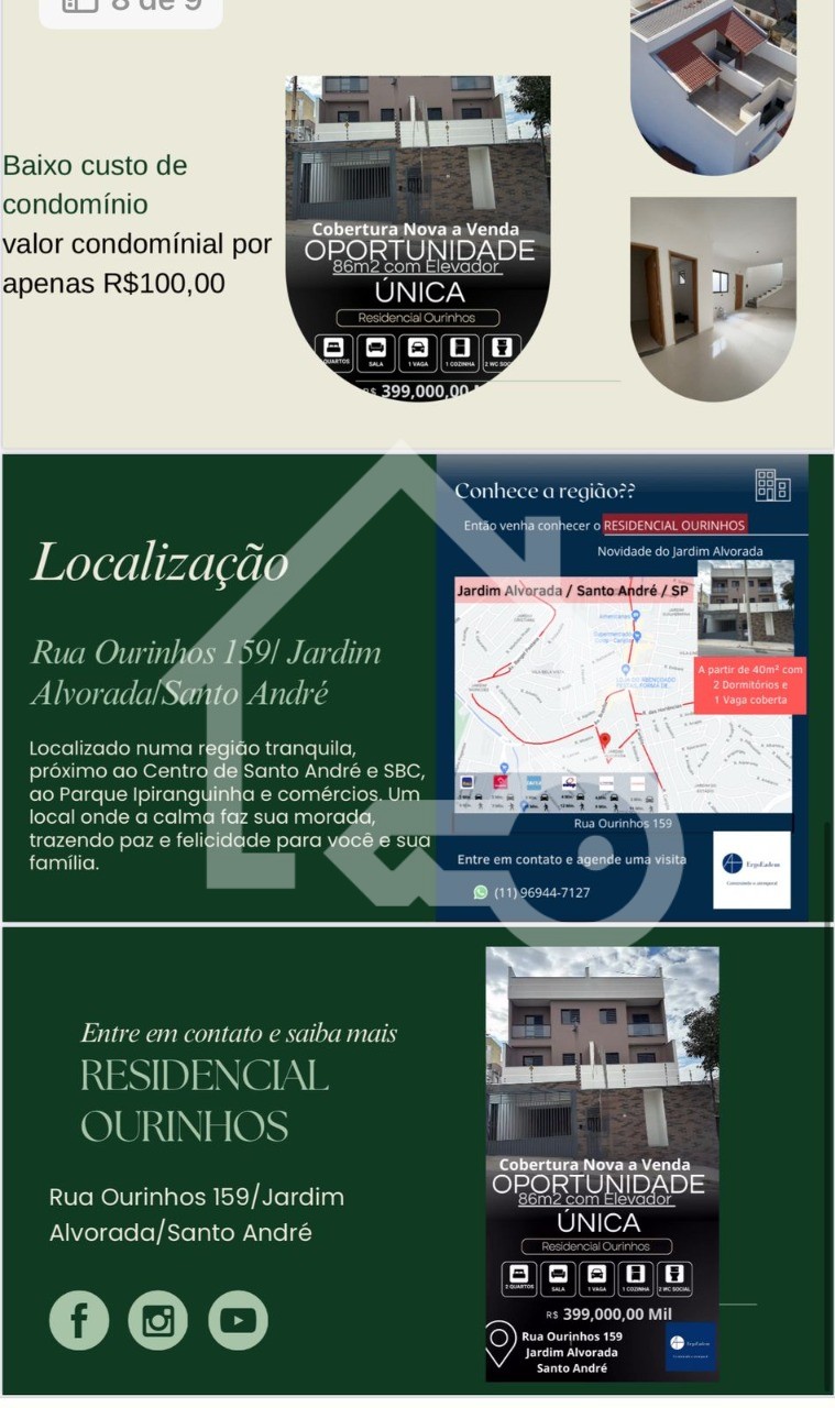 Apartamento Cobertura para venda em Santo André.