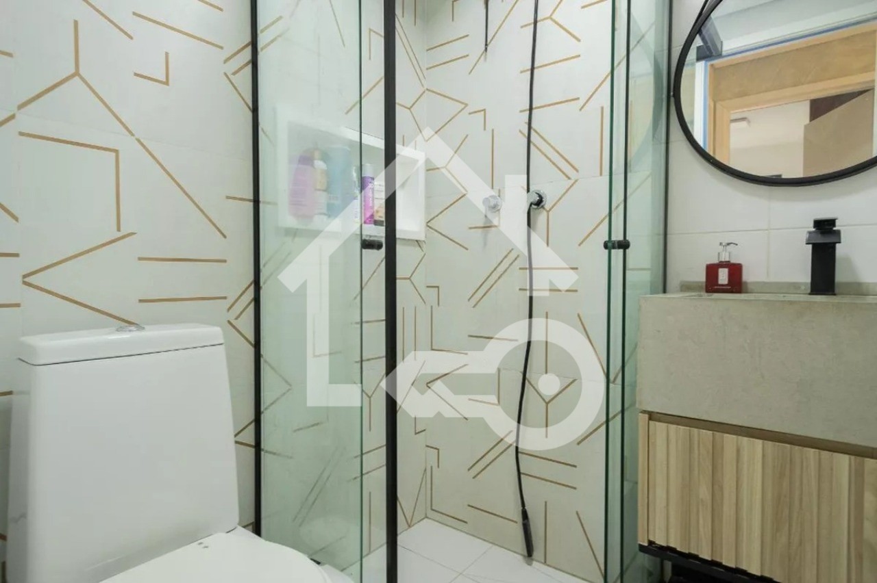 Banheiro com box em vidro.
