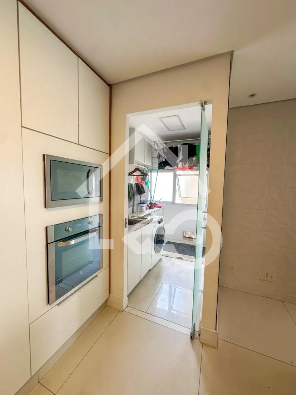 Varanda gourmet com fechamento em vidro.