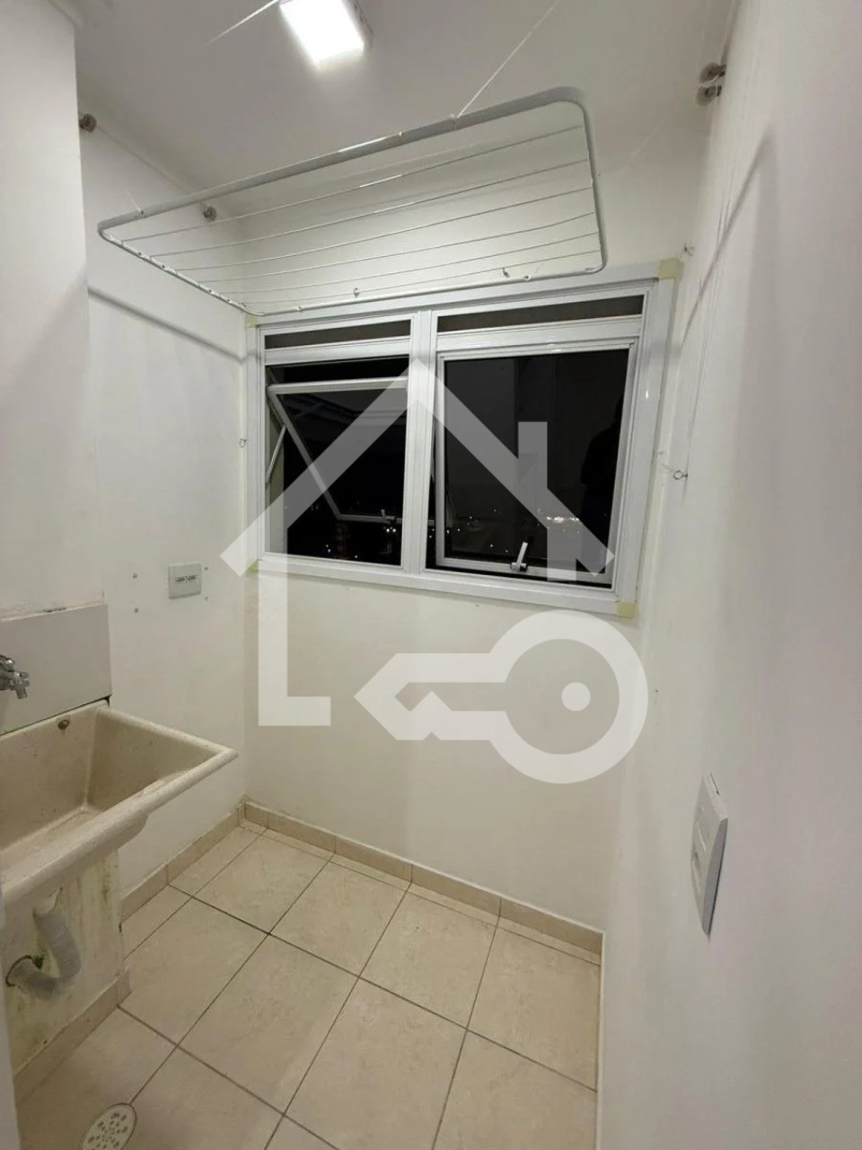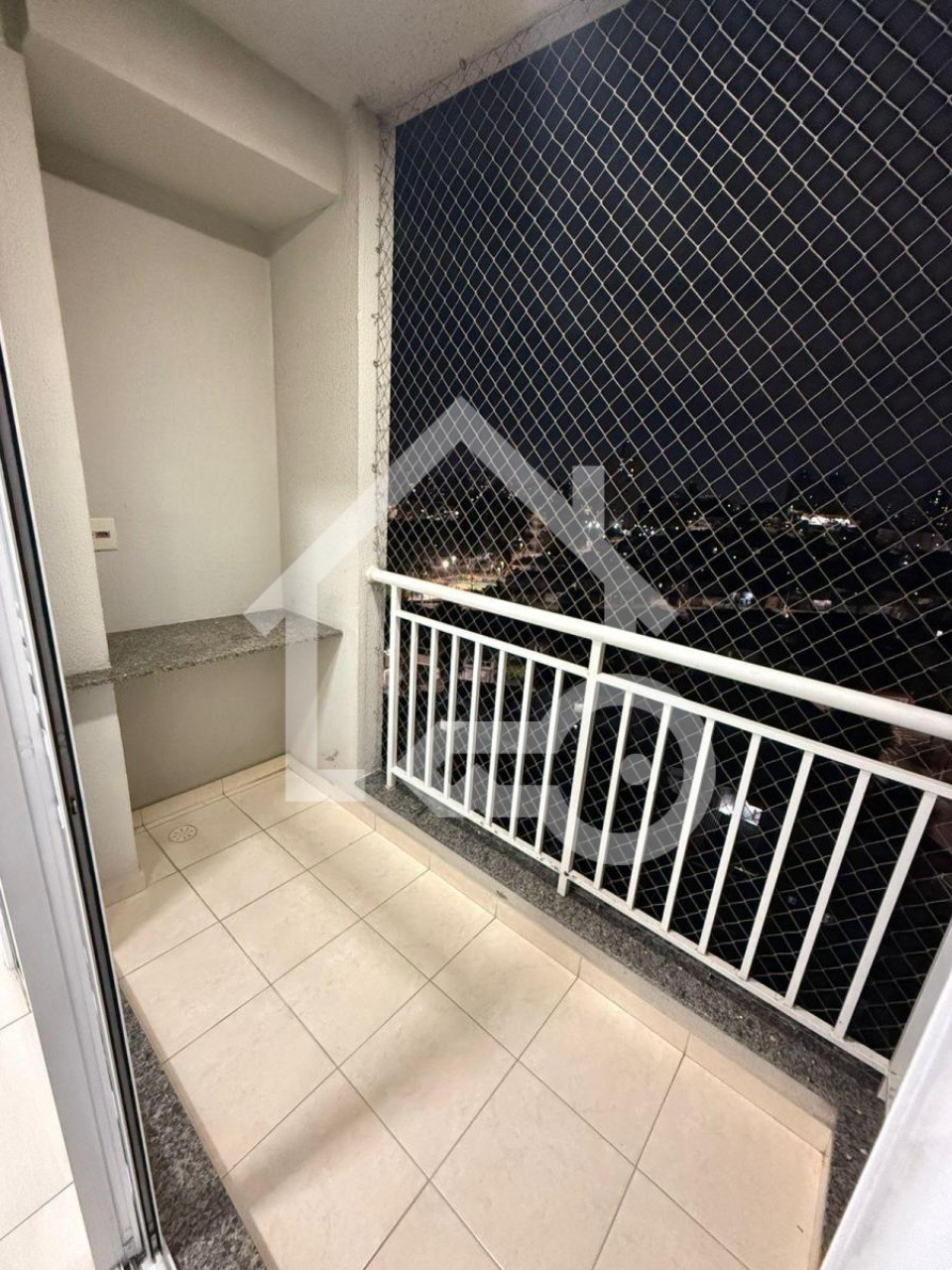 Varanda com fechamento em tela de proteção.