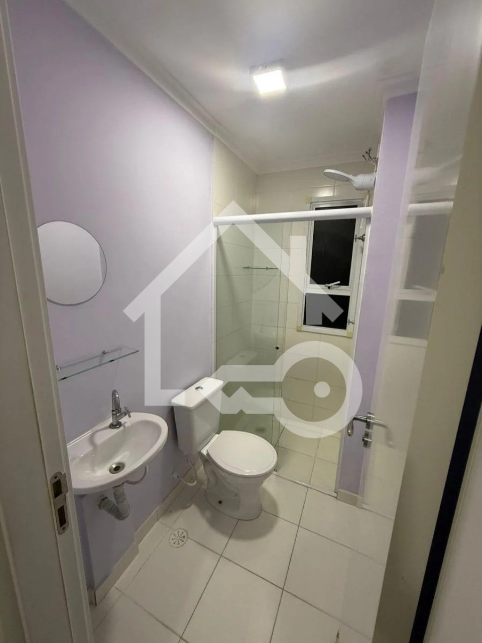 Banheiro com ventilação natural e box em vidro.