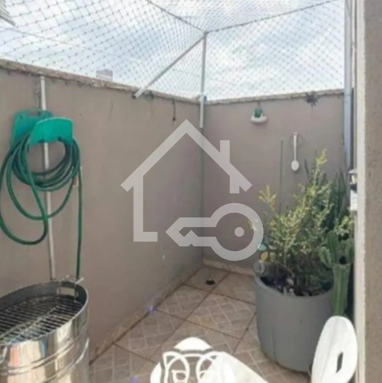 Varanda com telas de proteção.