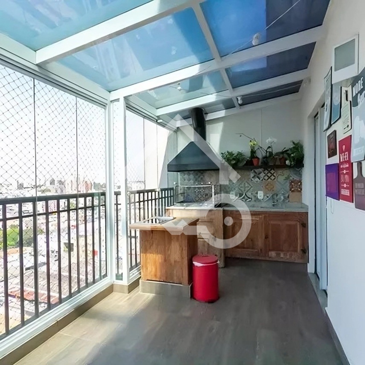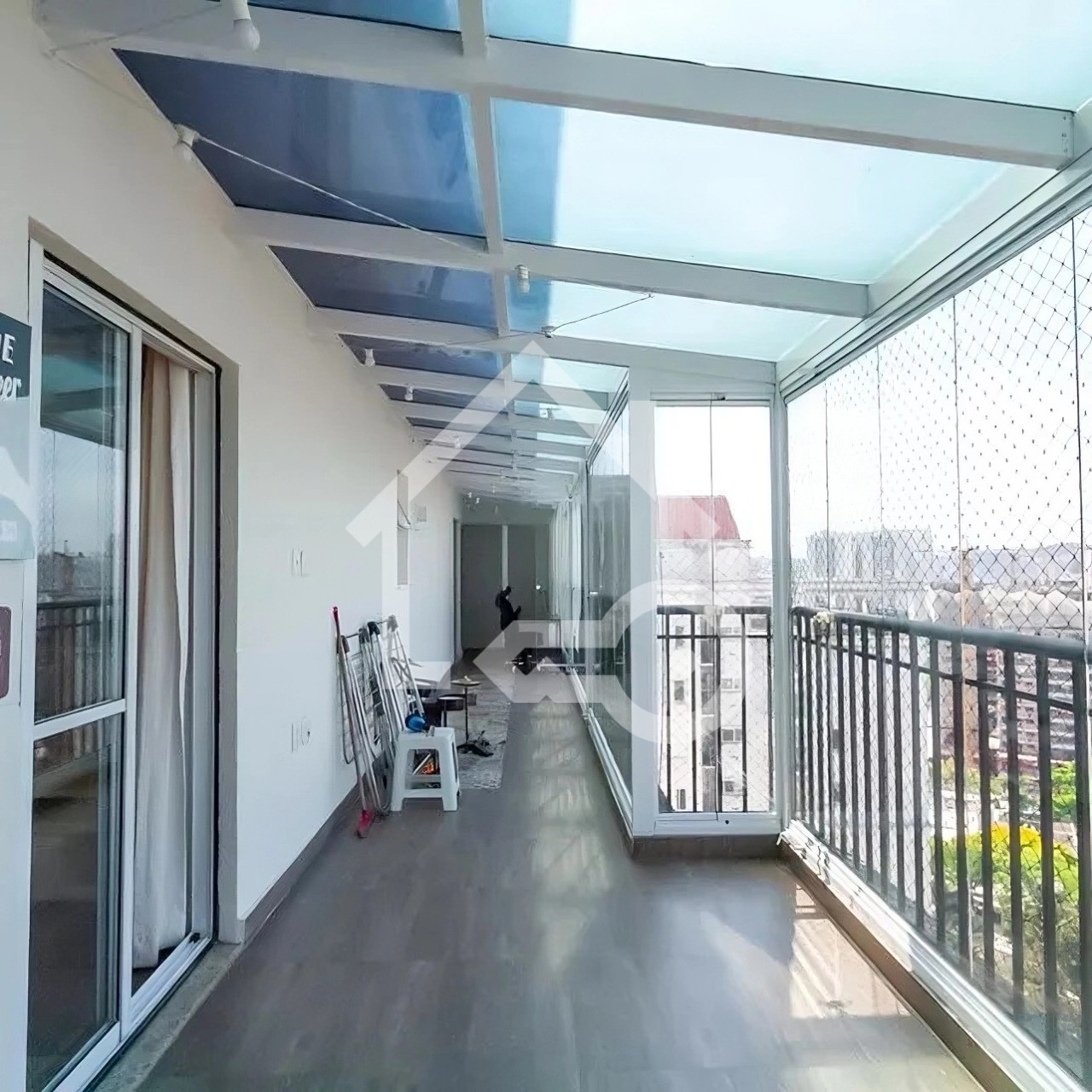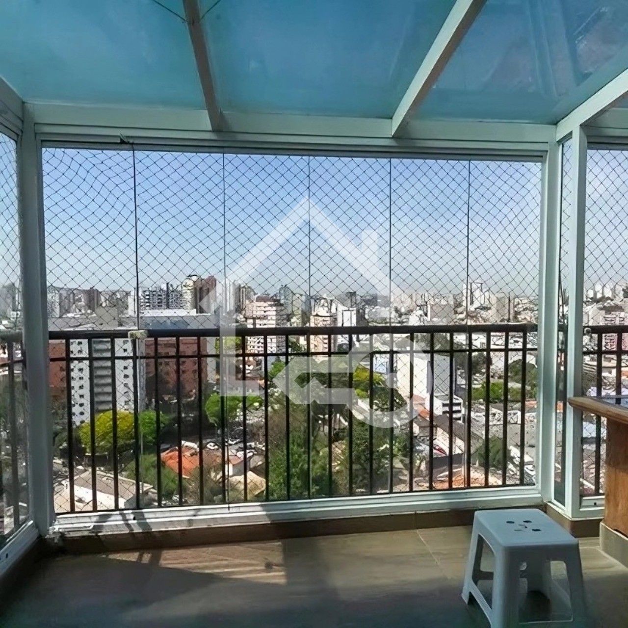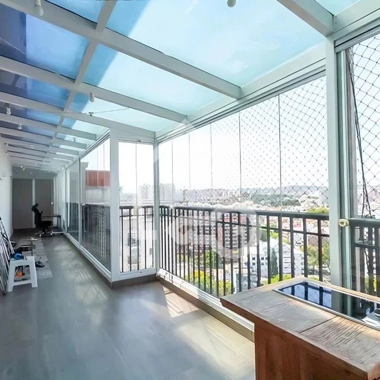 Varanda com fechamento com telas de proteção.