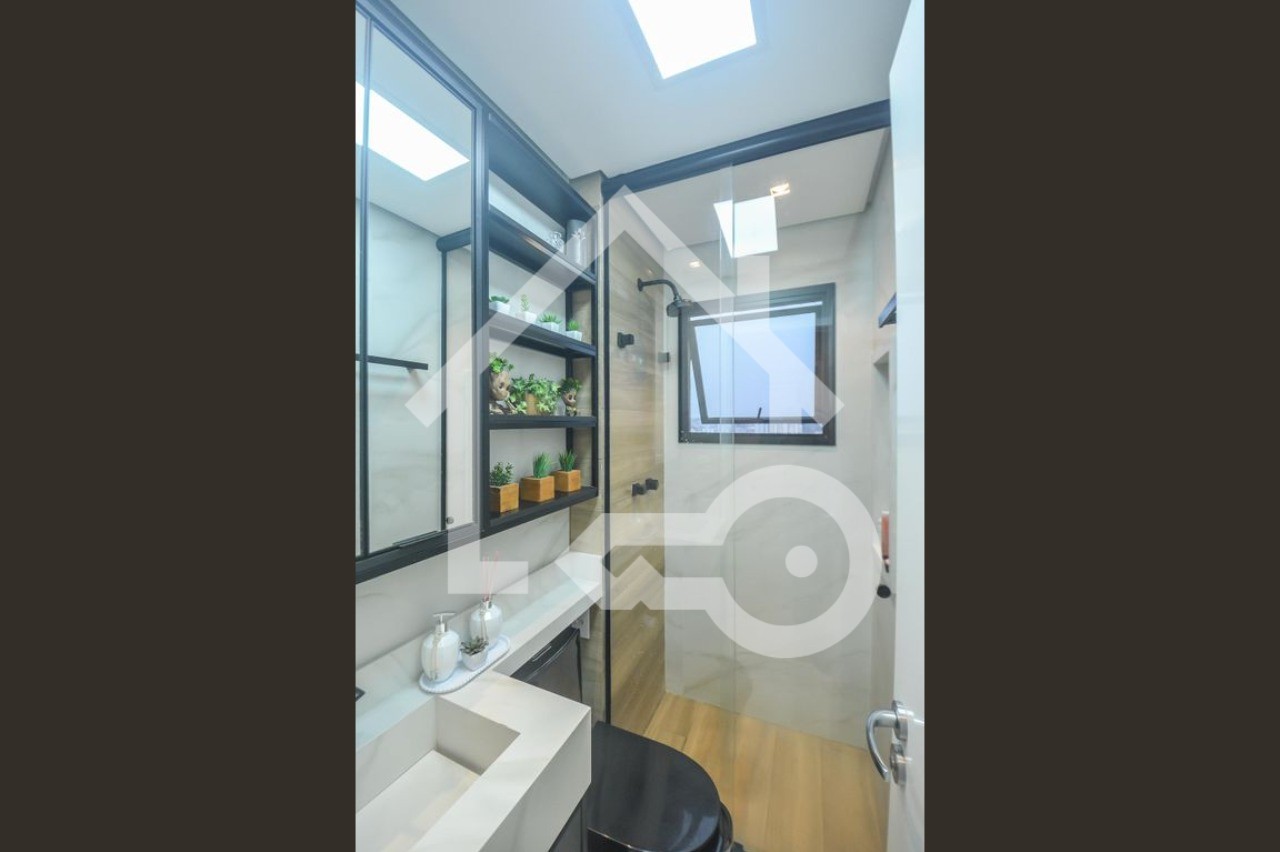 Banheiros com box com iluminação e ventilação natural.