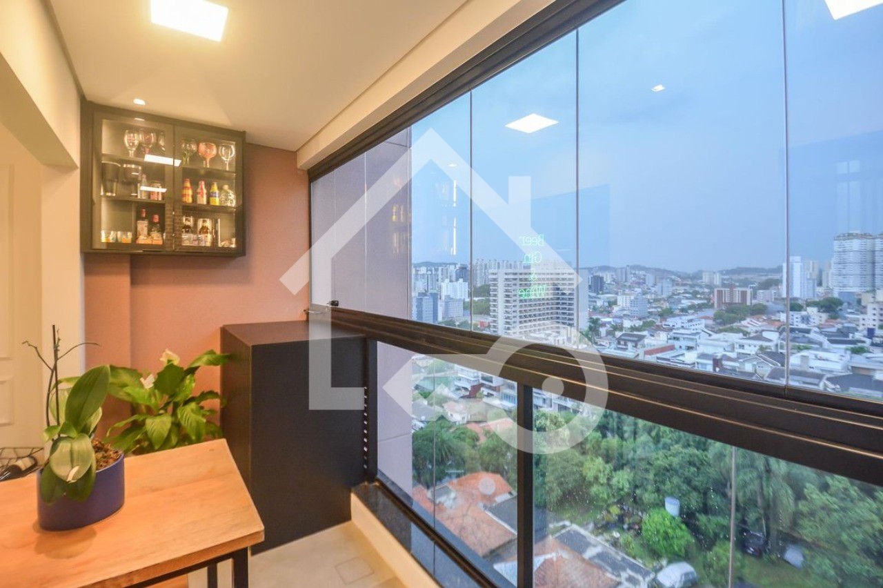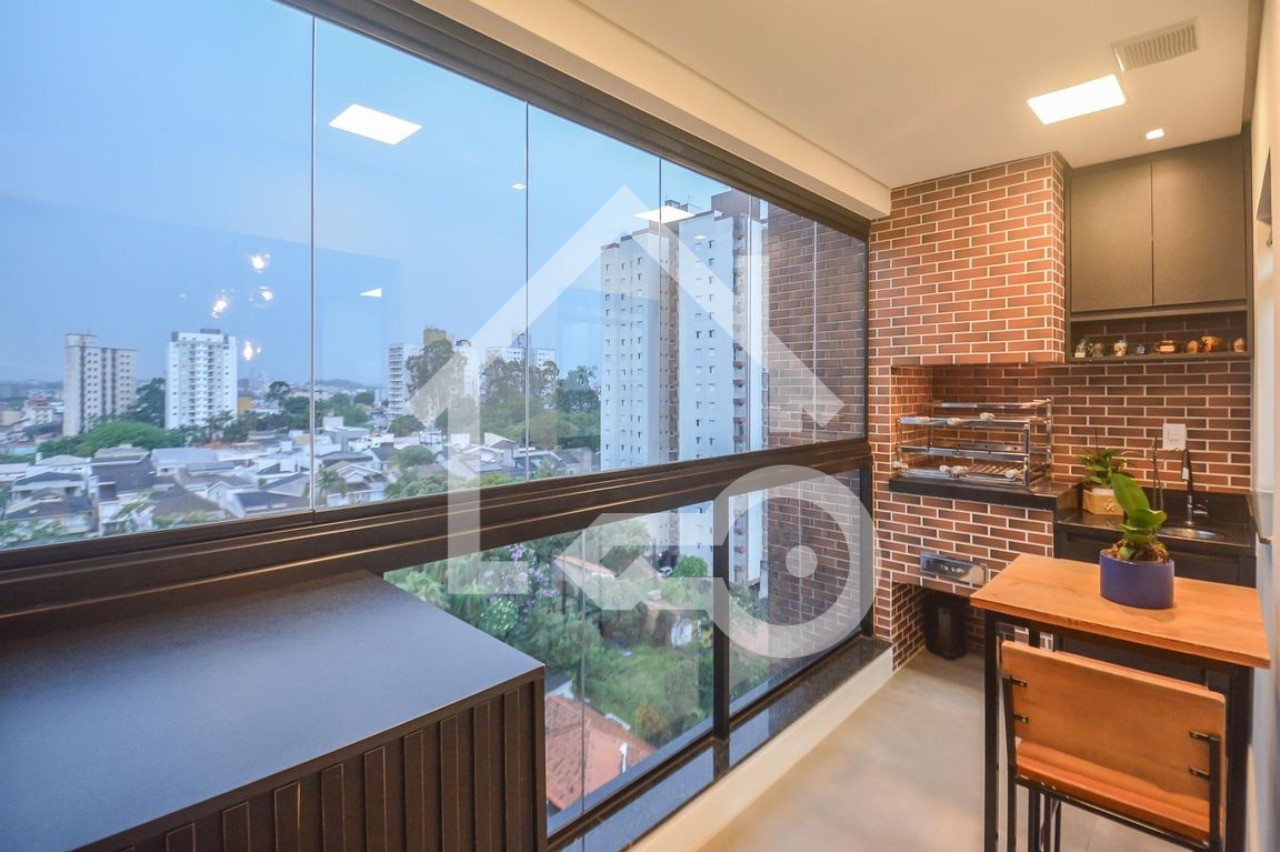 Varanda gourmet e envidraçada.