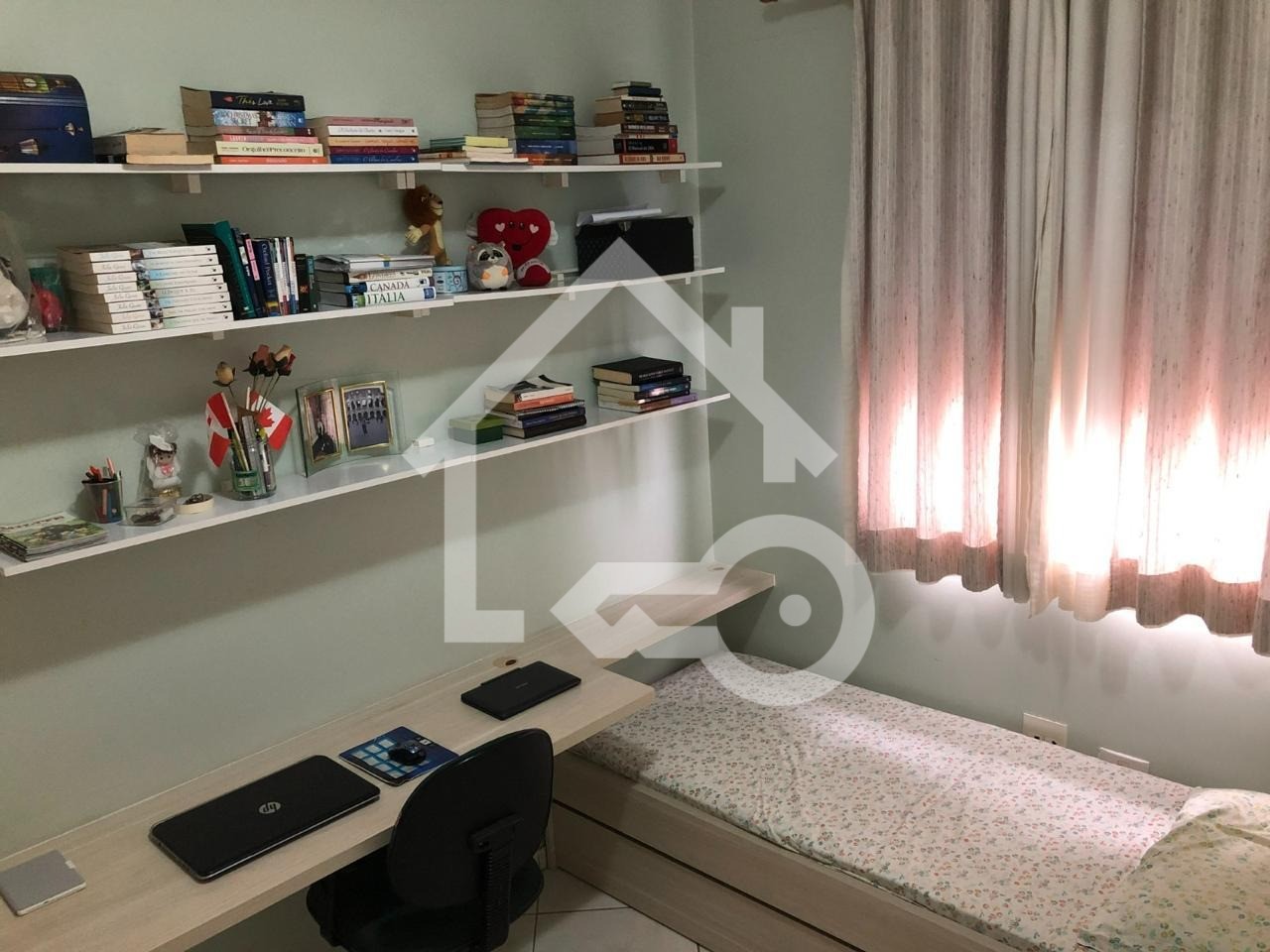 O imóvel possui 3 quartos, sendo 1 suíte, 2 banheiros e 2 vagas de garagem cobertas e fixas.