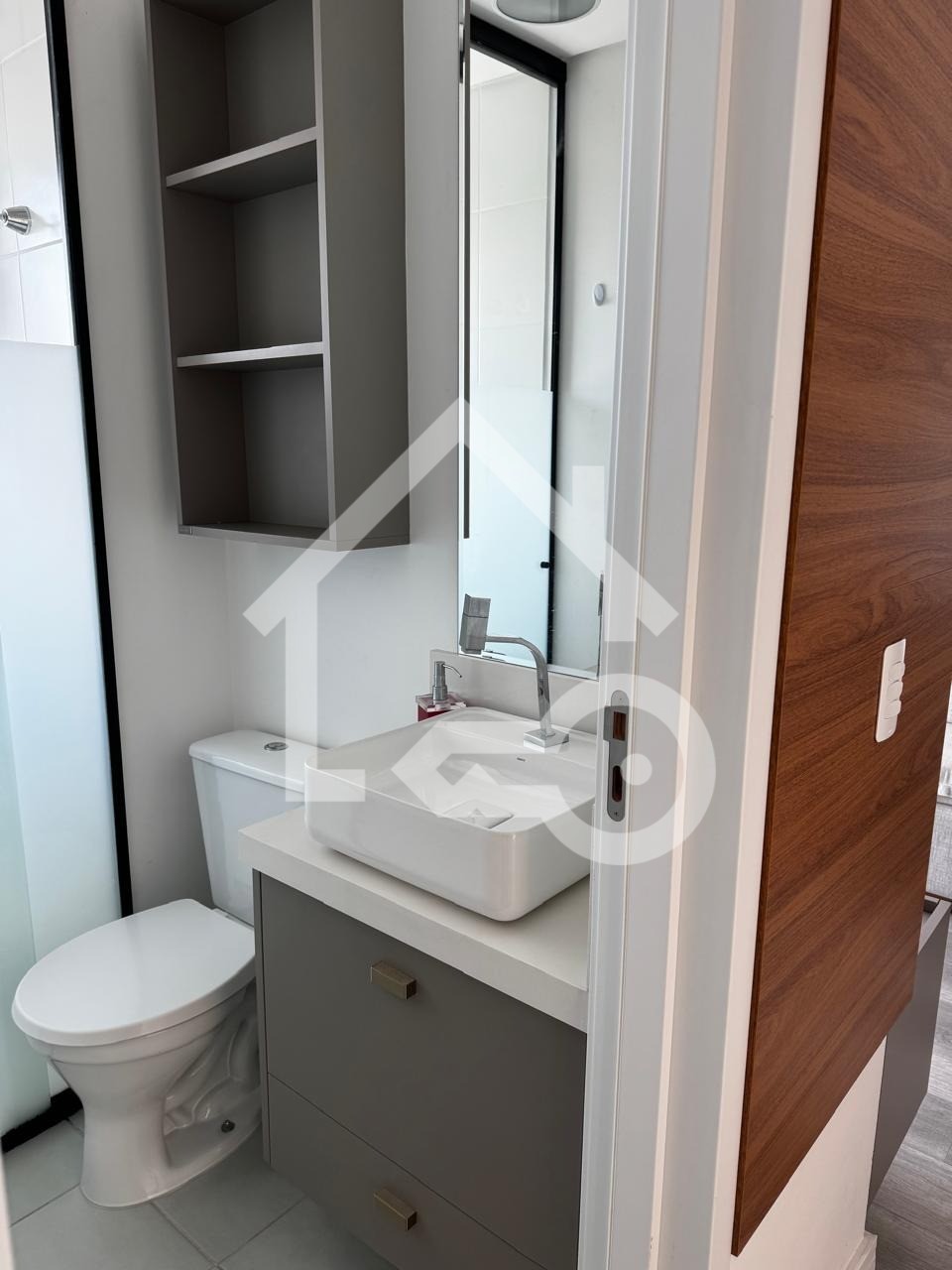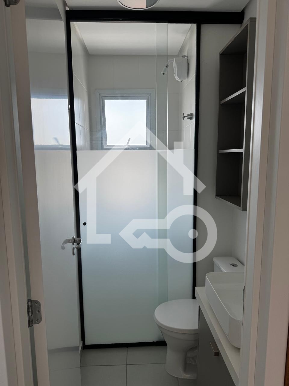 Banheiro com ventilação natural e box em vidro.