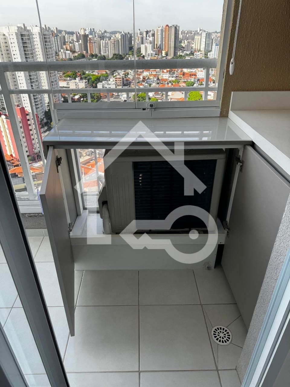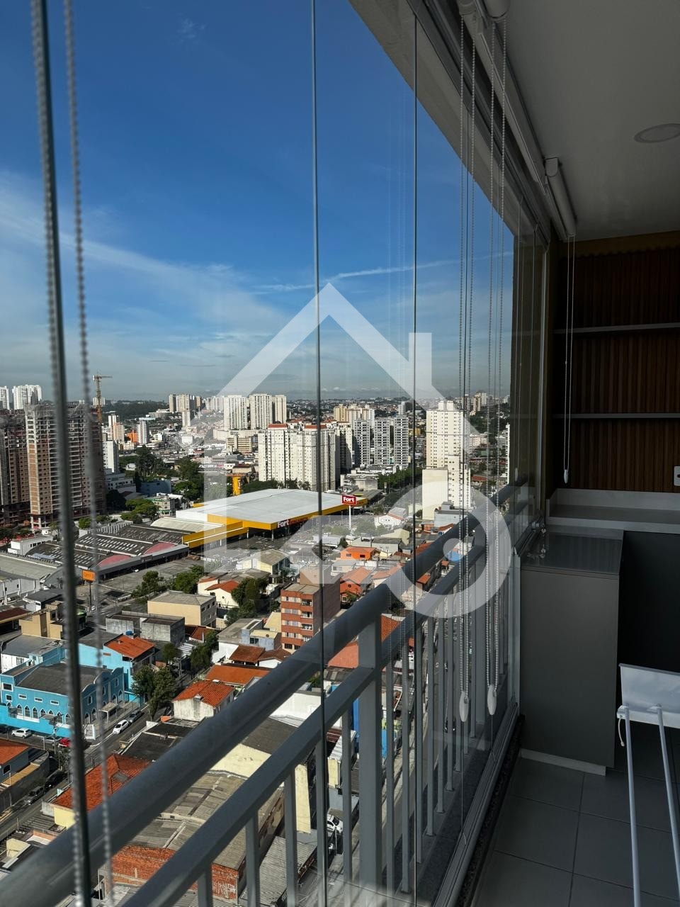 Varanda com fechamento em vidro.