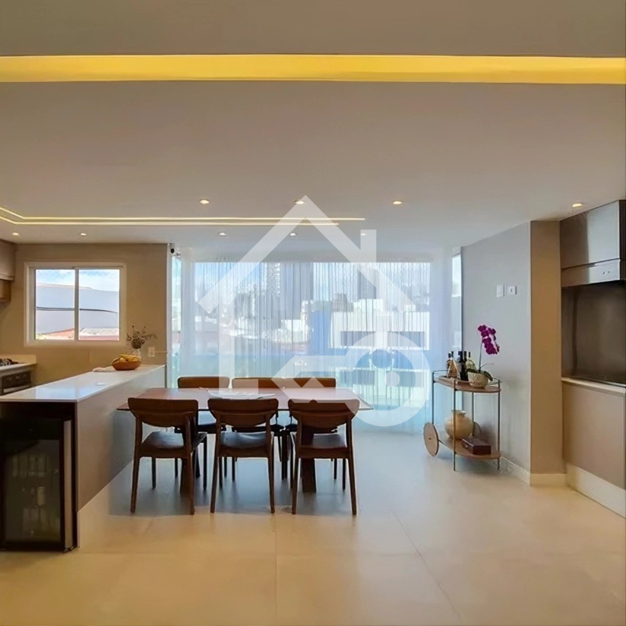 Área gourmet com fechamento em vidro.