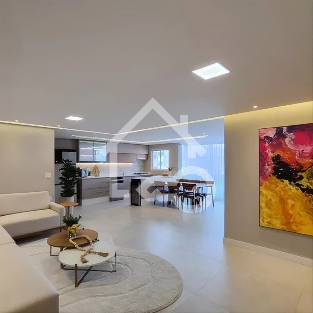 O imóvel possui 3 quartos, sendo todos suítes, 4 banheiros e 2 vagas de garagem cobertas.