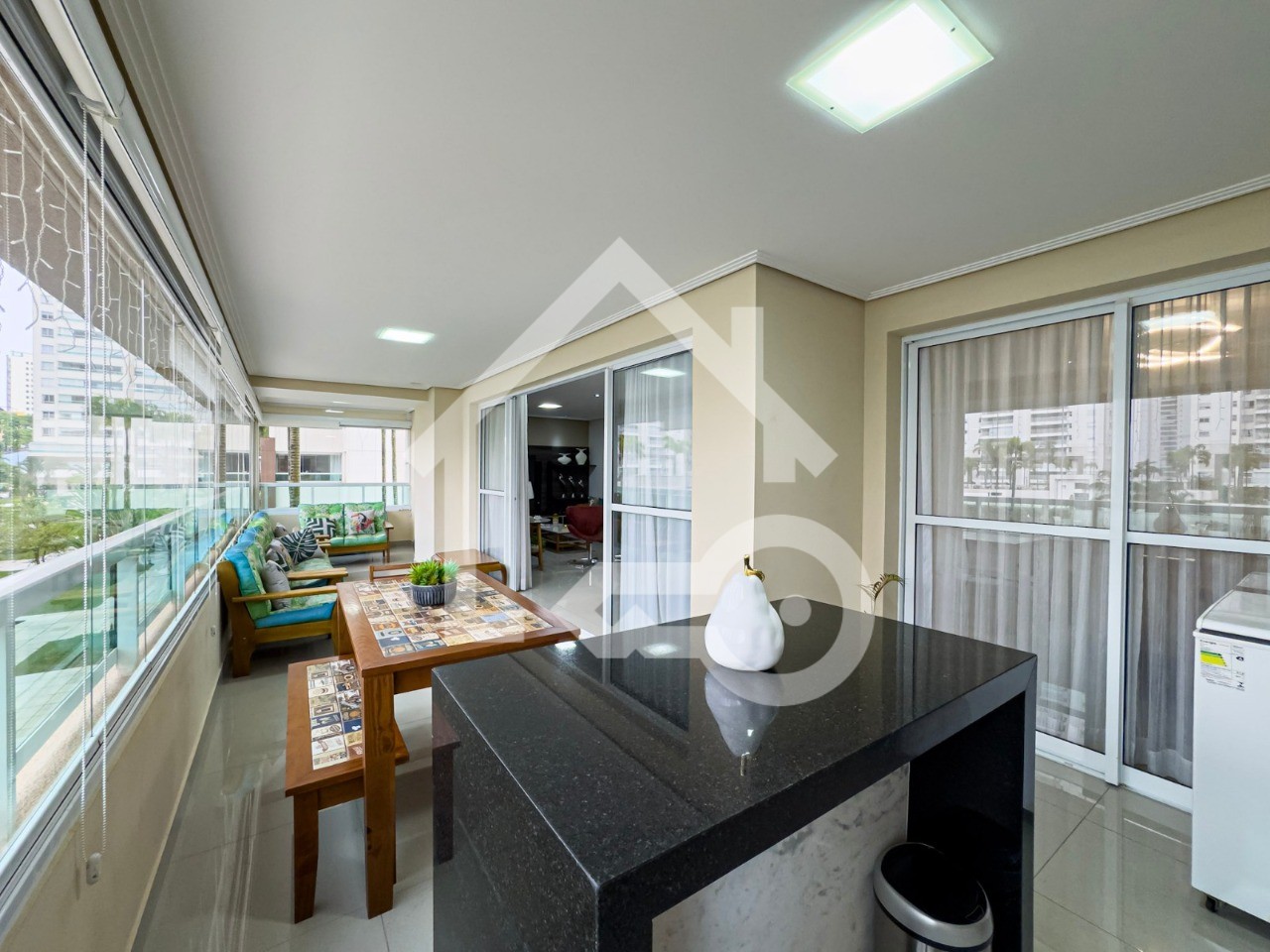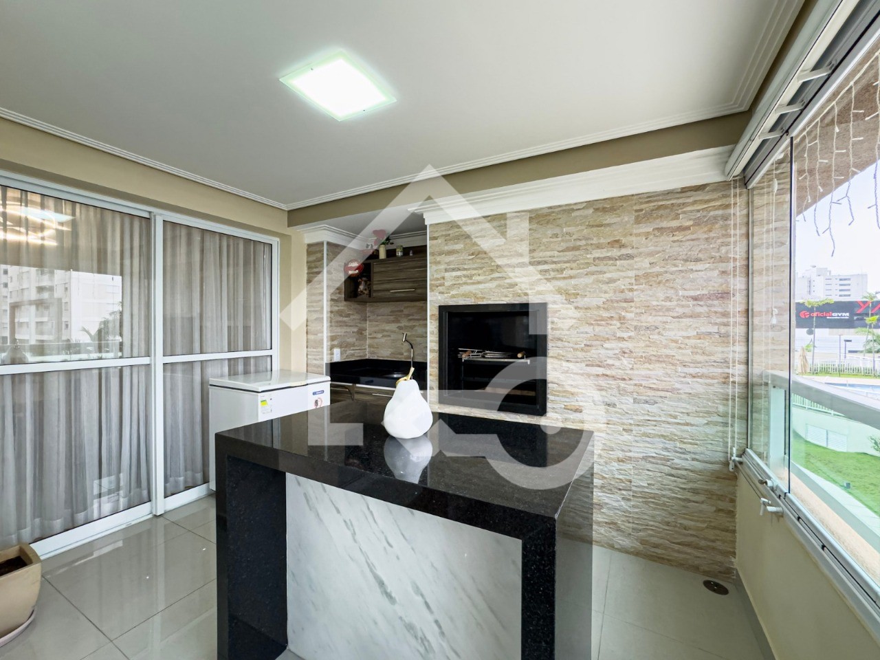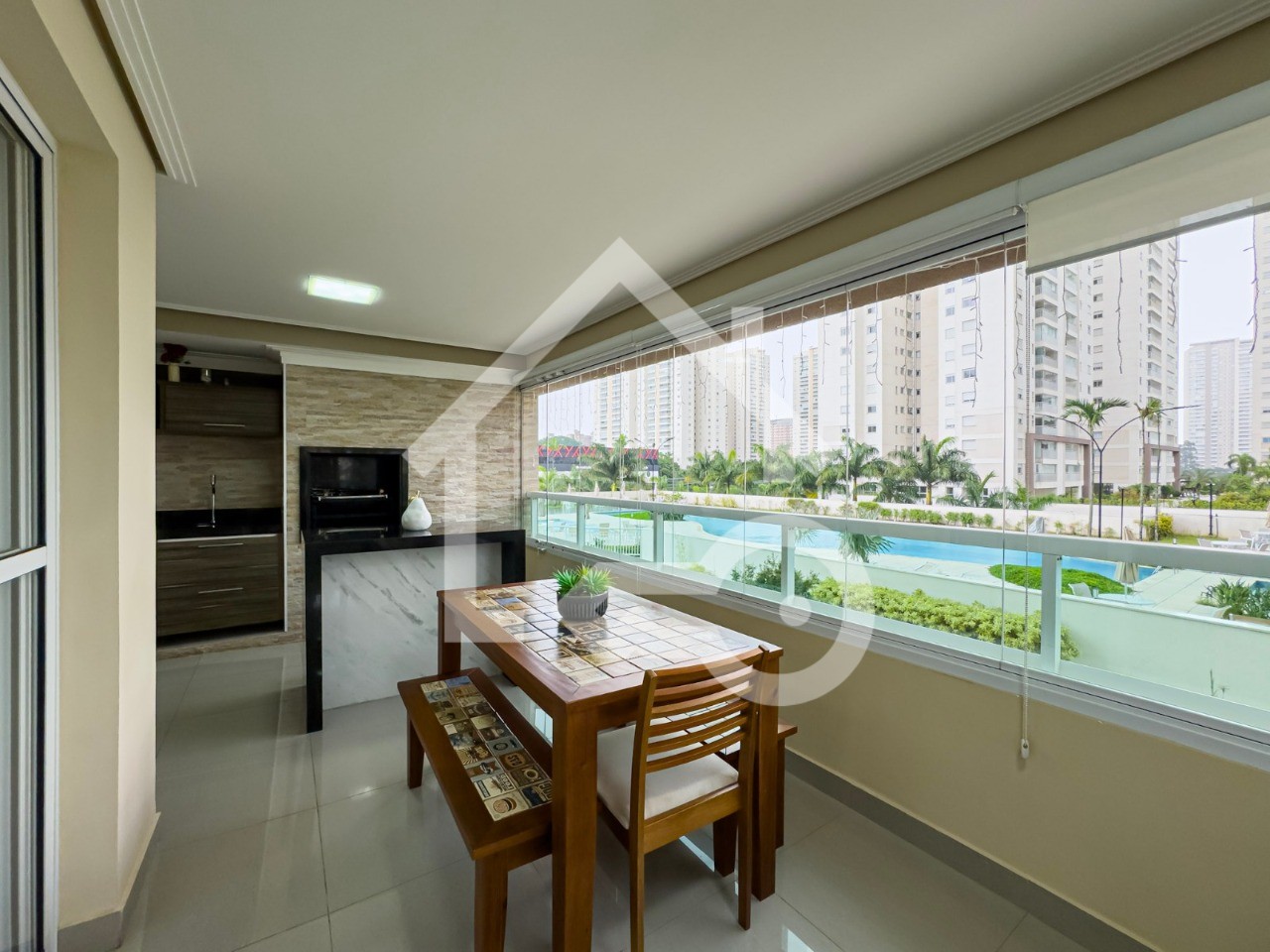 Varanda Gourmet com fechamento em vidro.