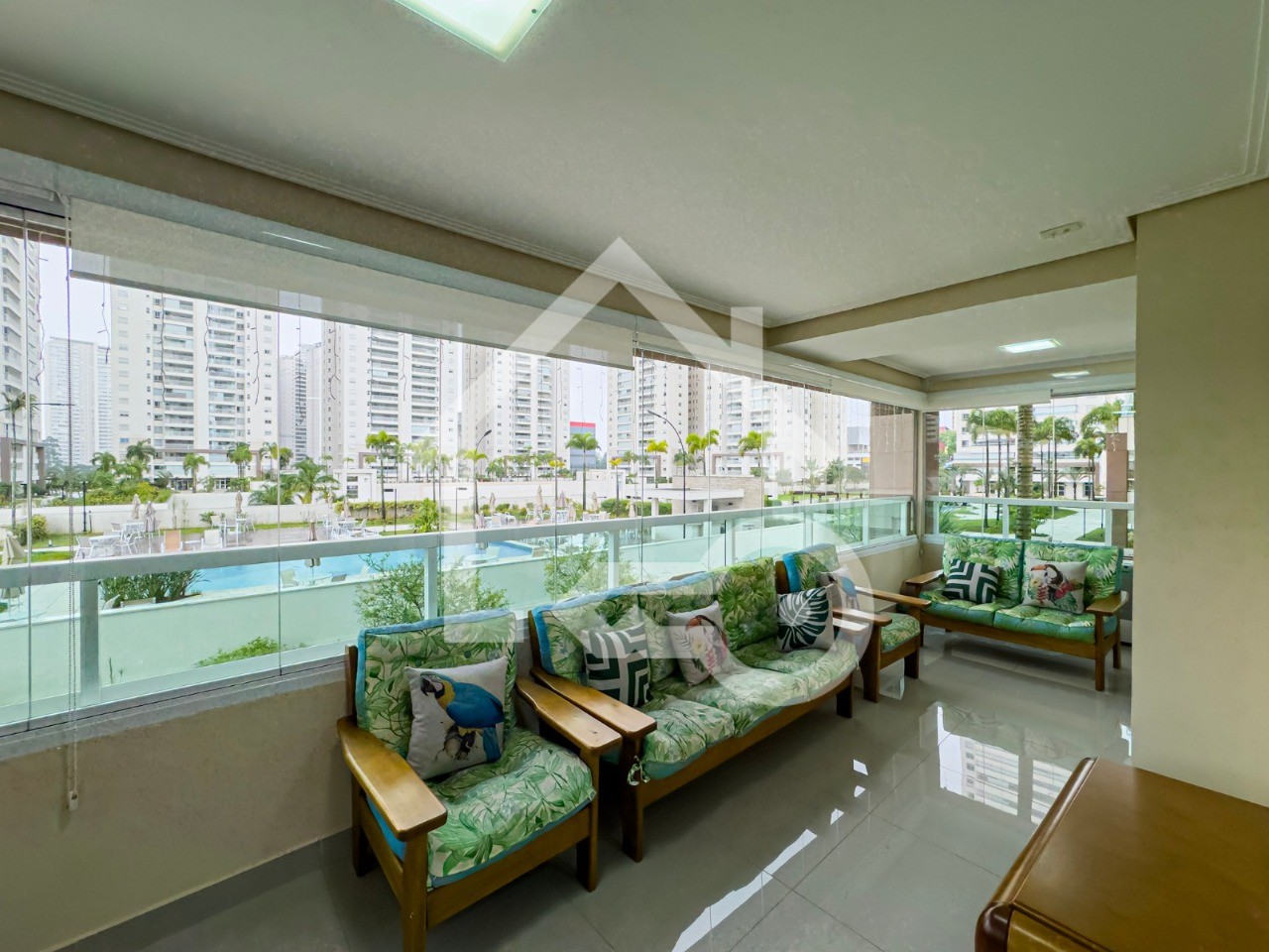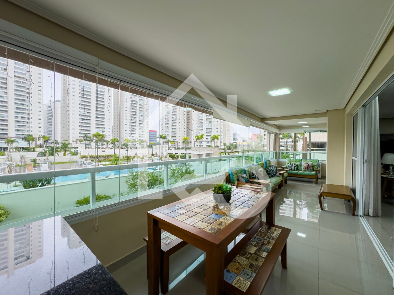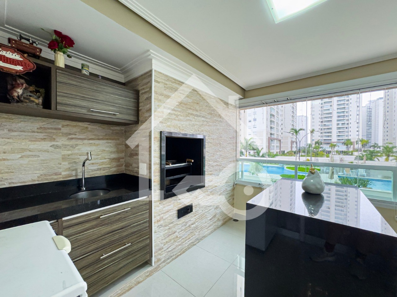 Varanda Gourmet com fechamento em vidro.