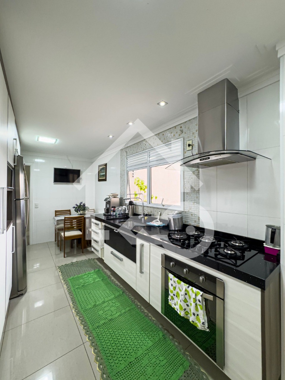 Cozinha com iluminação natural separada da área de serviço.