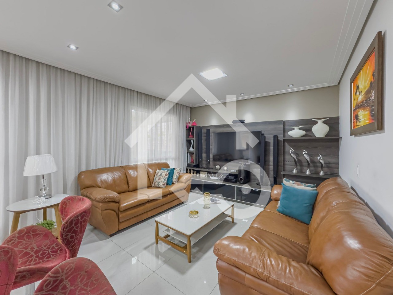 O imóvel possui 3 quartos, sendo 3 suítes, 4 banheiros e 3 vagas de garagem.