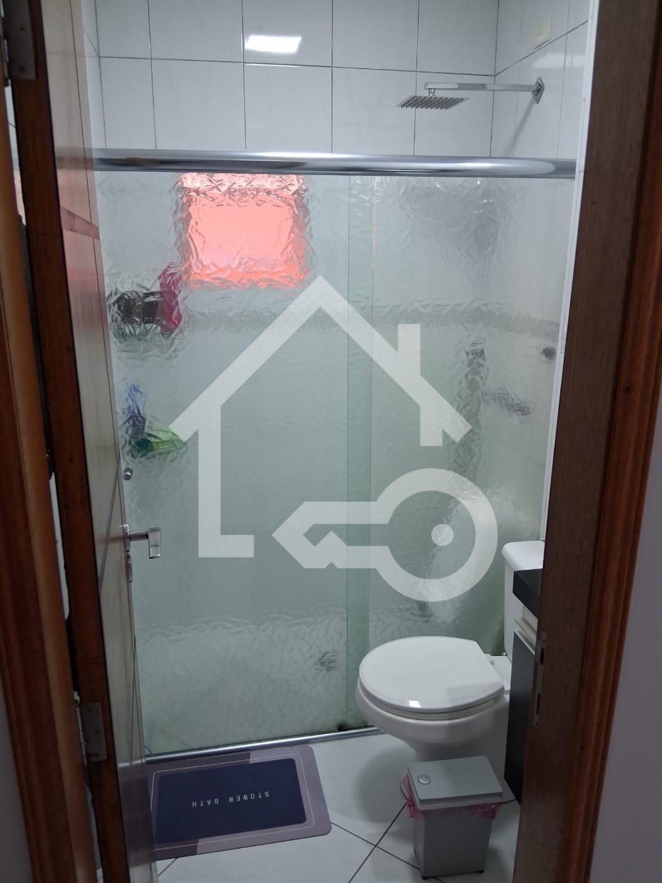 Banheiro com ventilação natural e box.