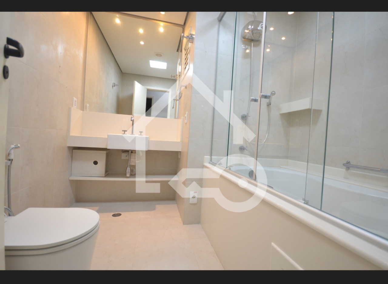 O banheiro social conta uma banheira com cromoterapia.