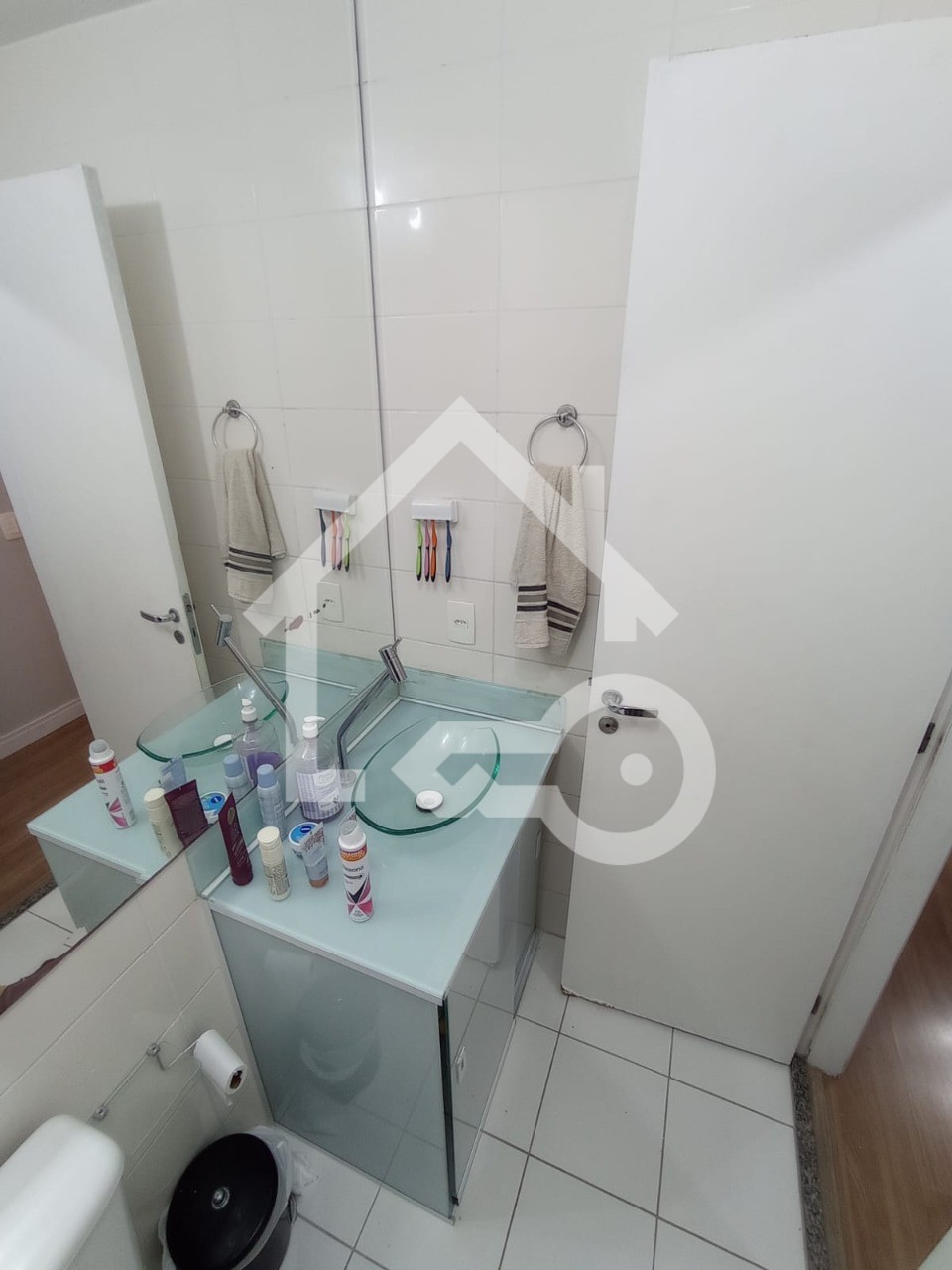 Banheiros com box em vidro.