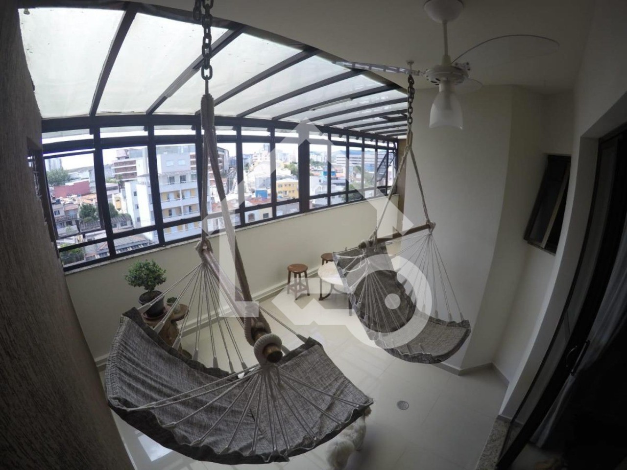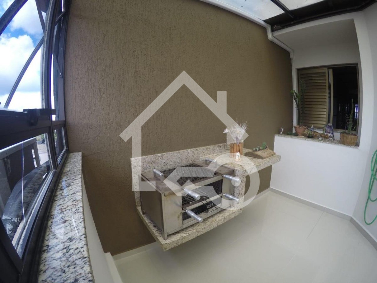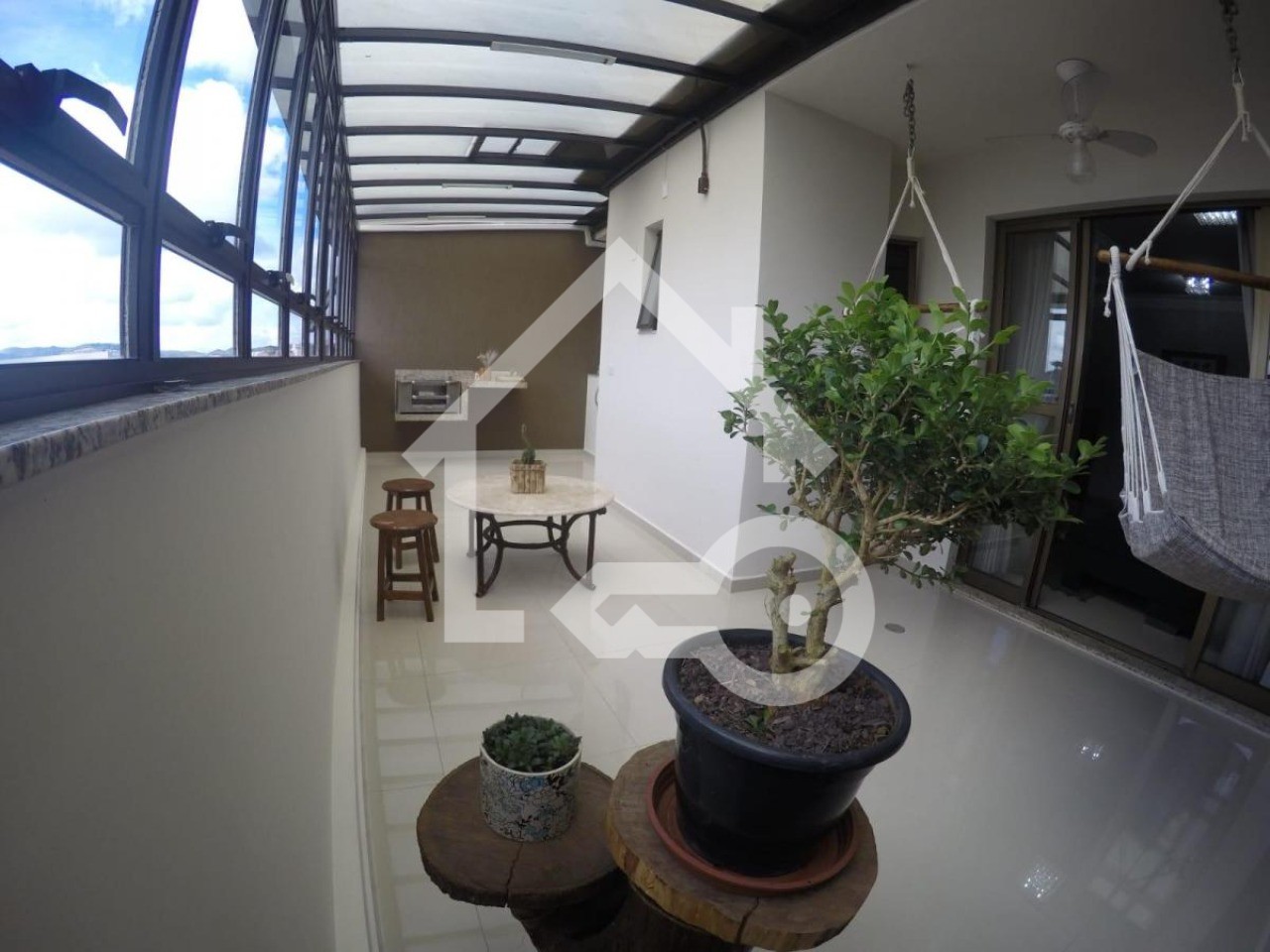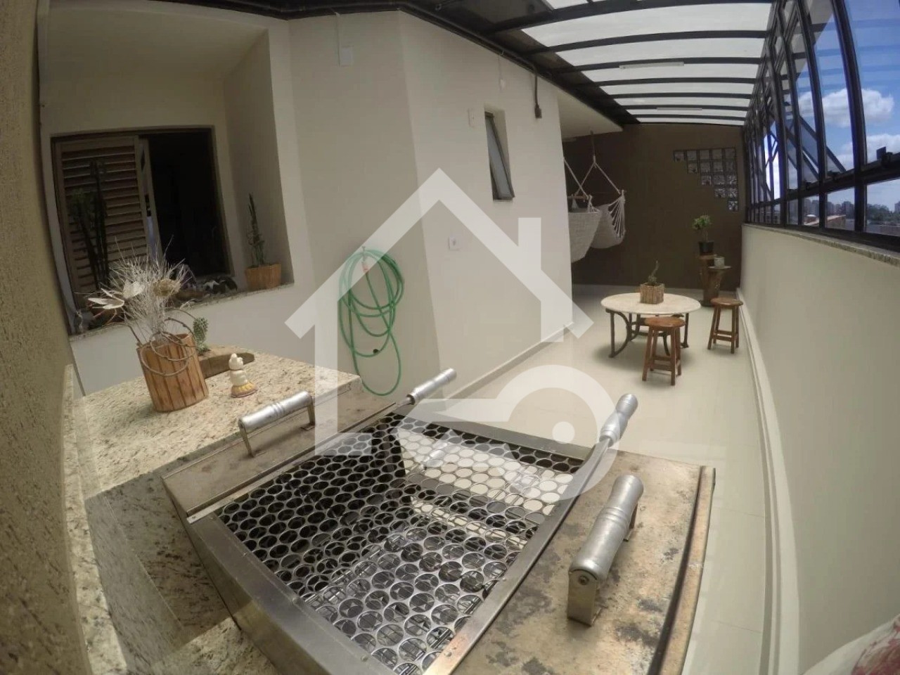 Varanda gourmet com teto retrátil.