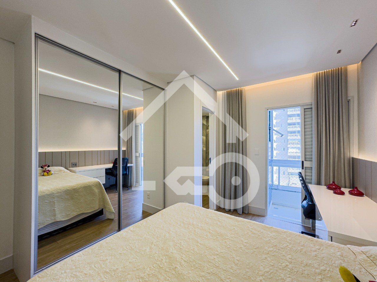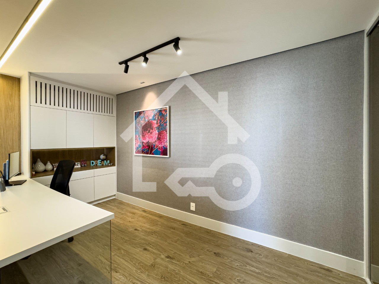 O imóvel possui 4 quartos, sendo 2 suítes (1 com closet), 4 banheiros e 4 vagas de garagem cobertas escrituradas.