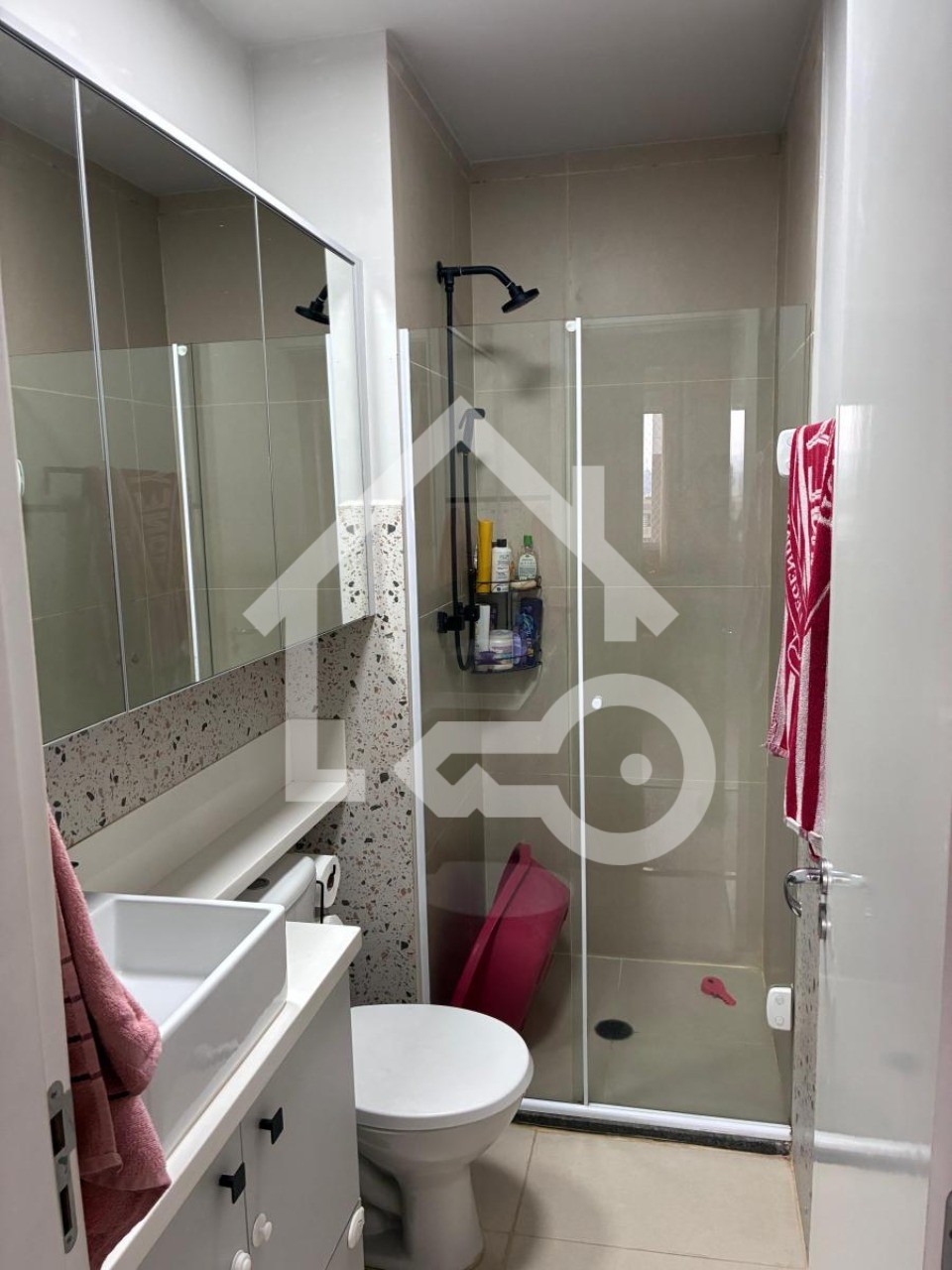 Banheiro com box em vidro.