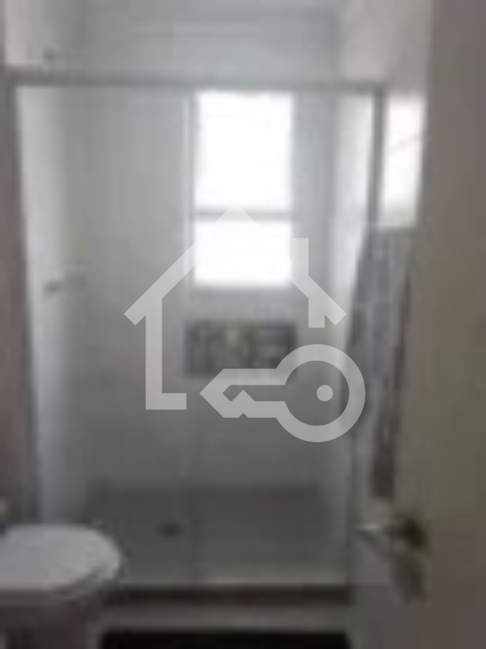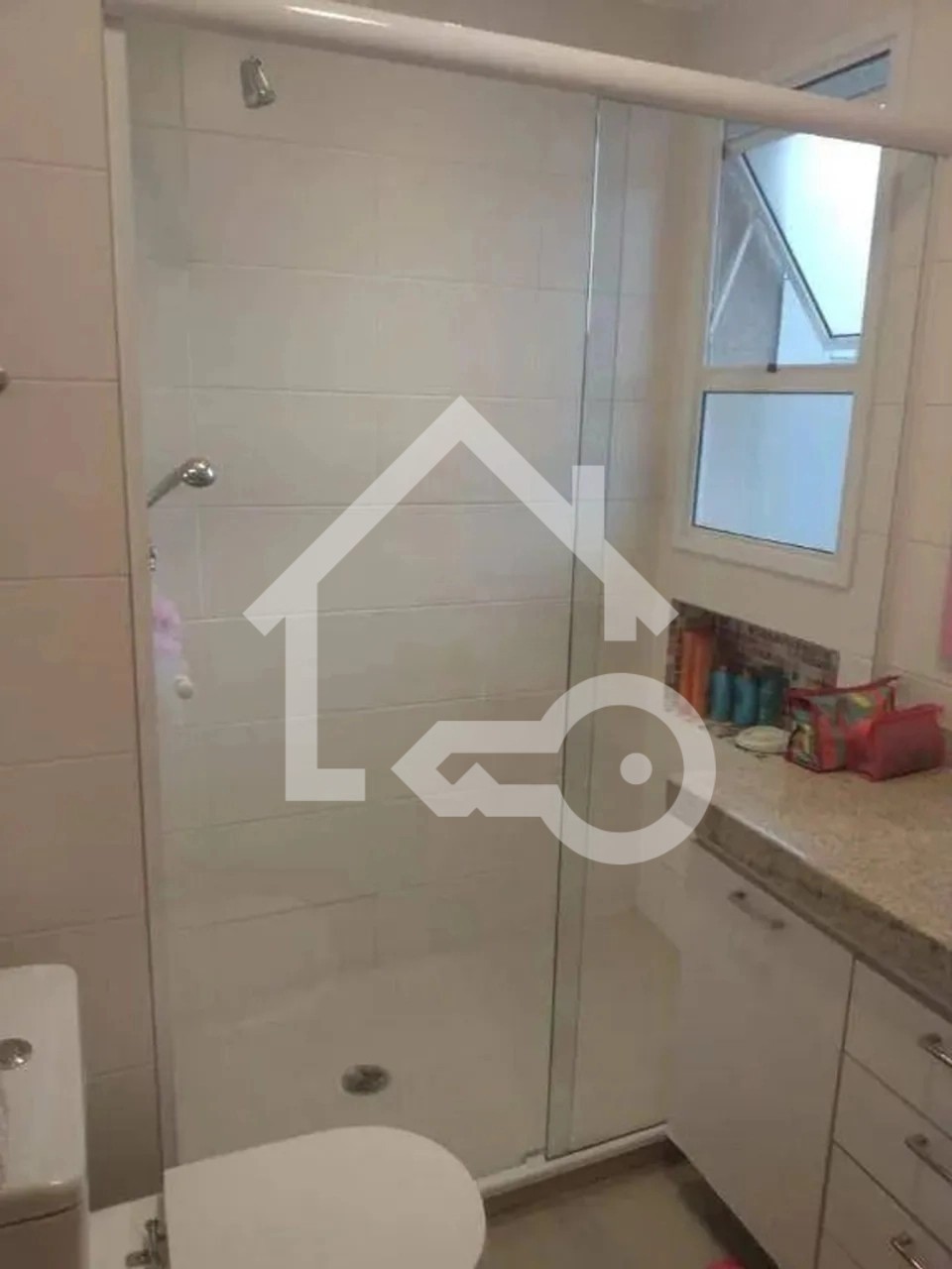 Banheiros com ventilação natural e box em vidro.