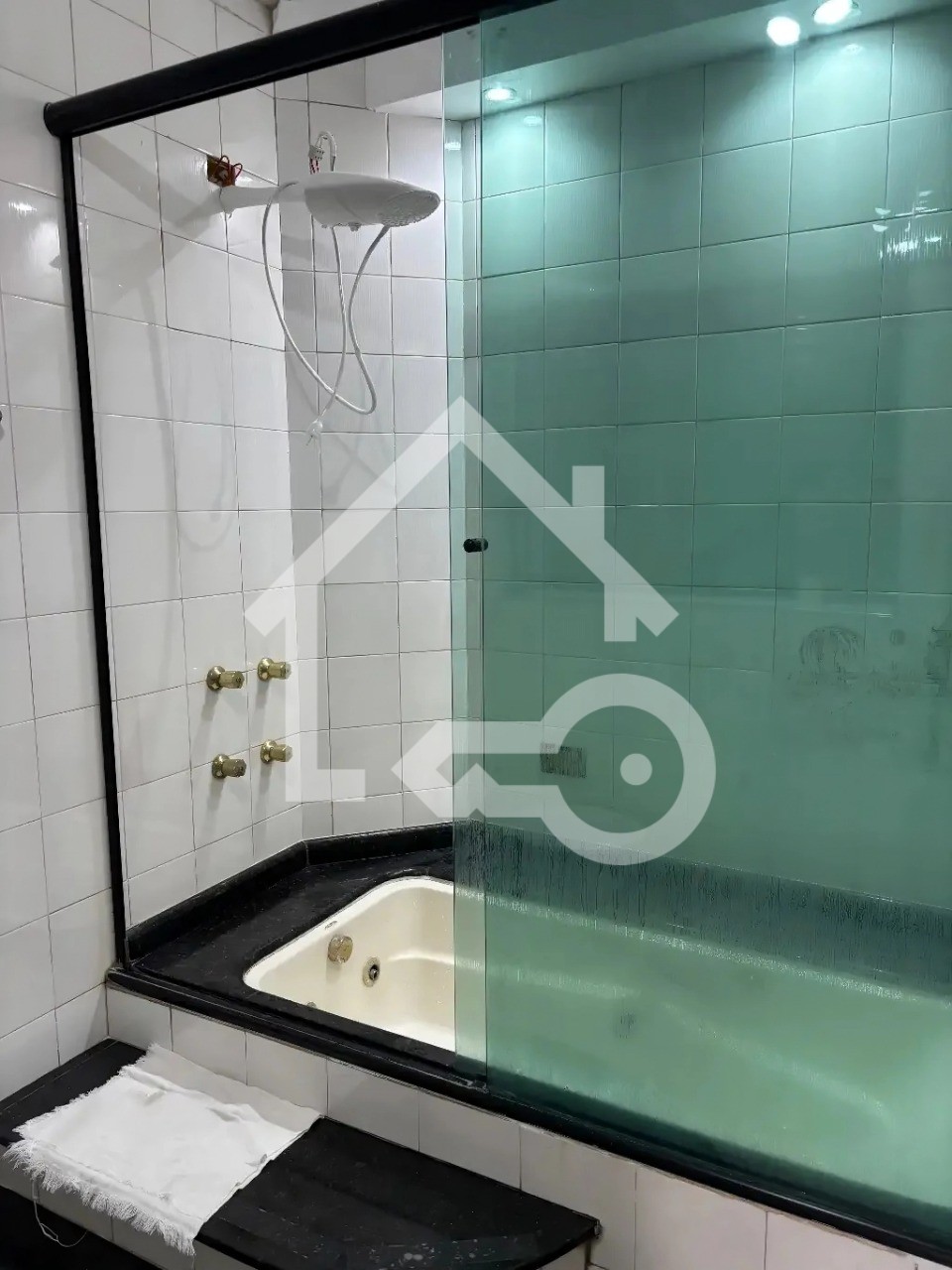 Banheiro com box em vidro.