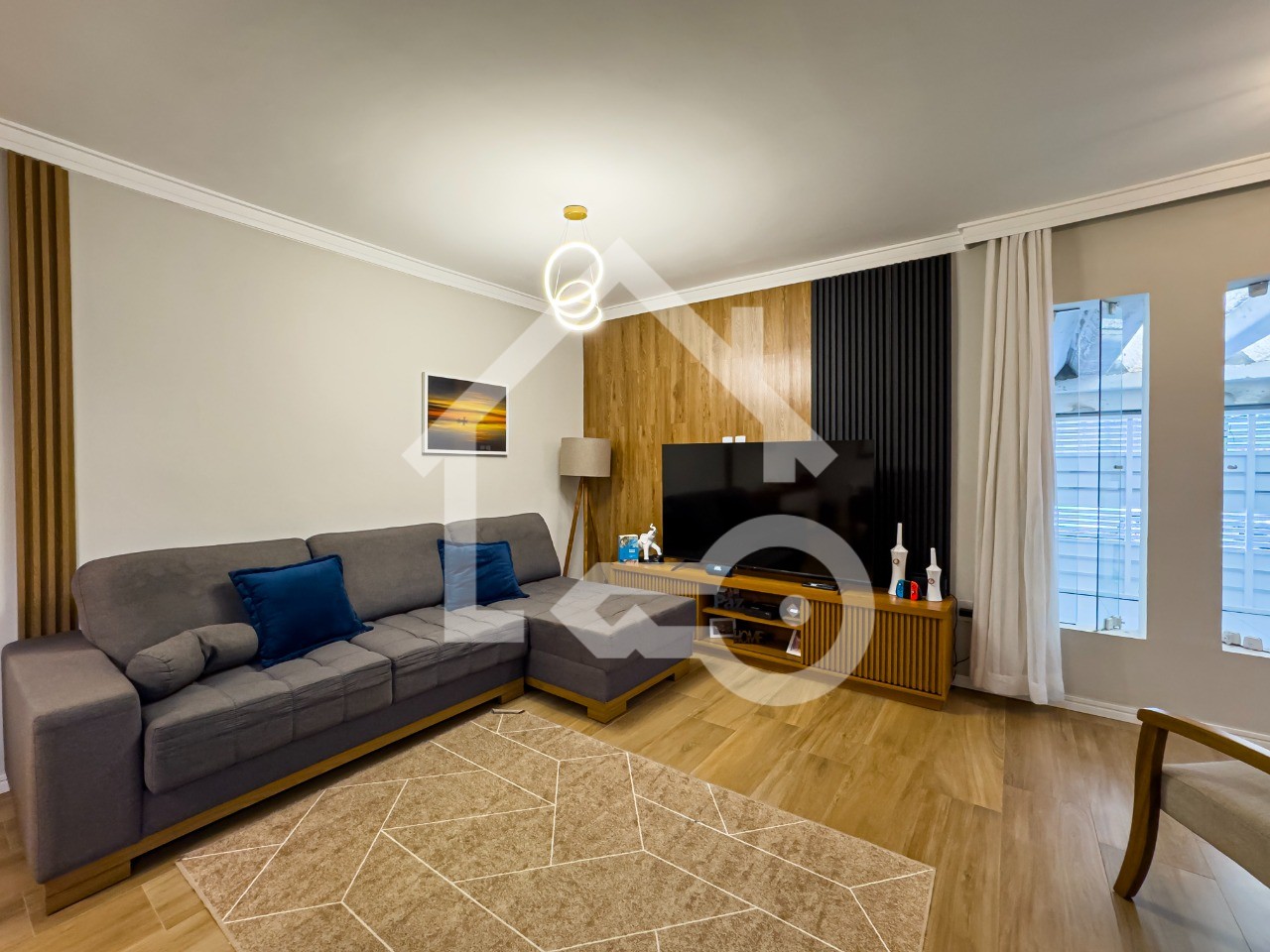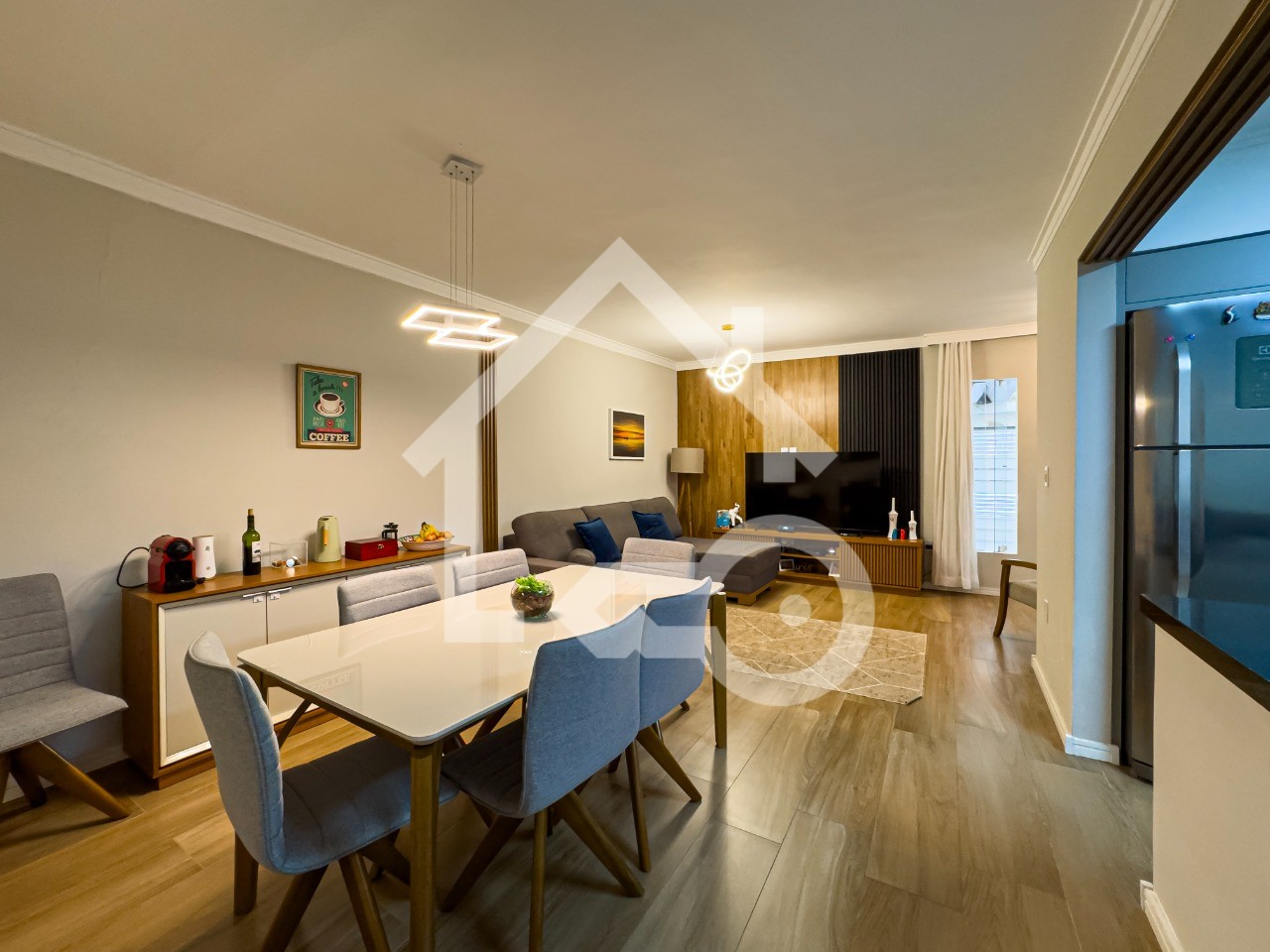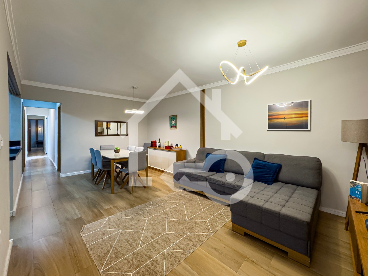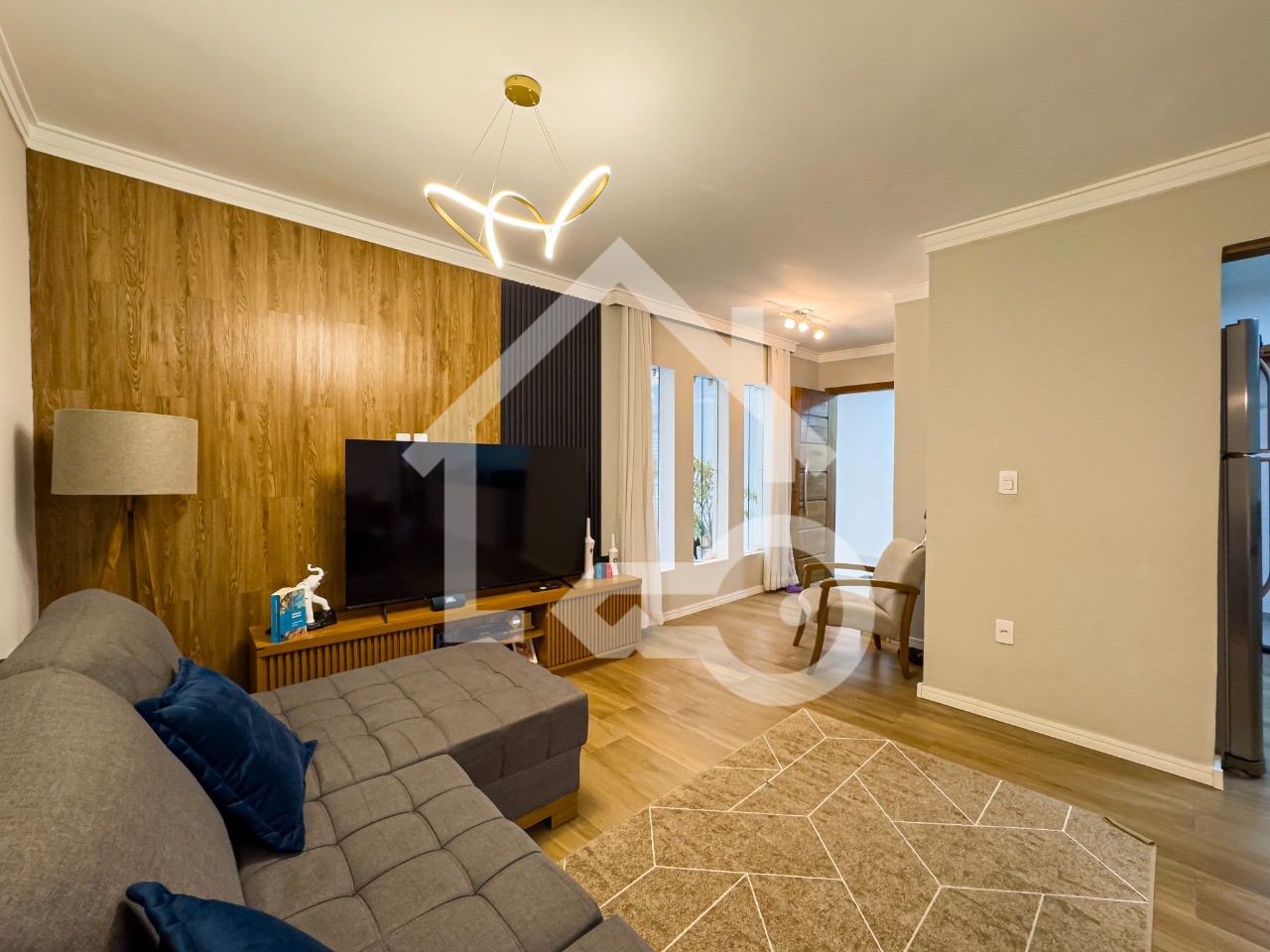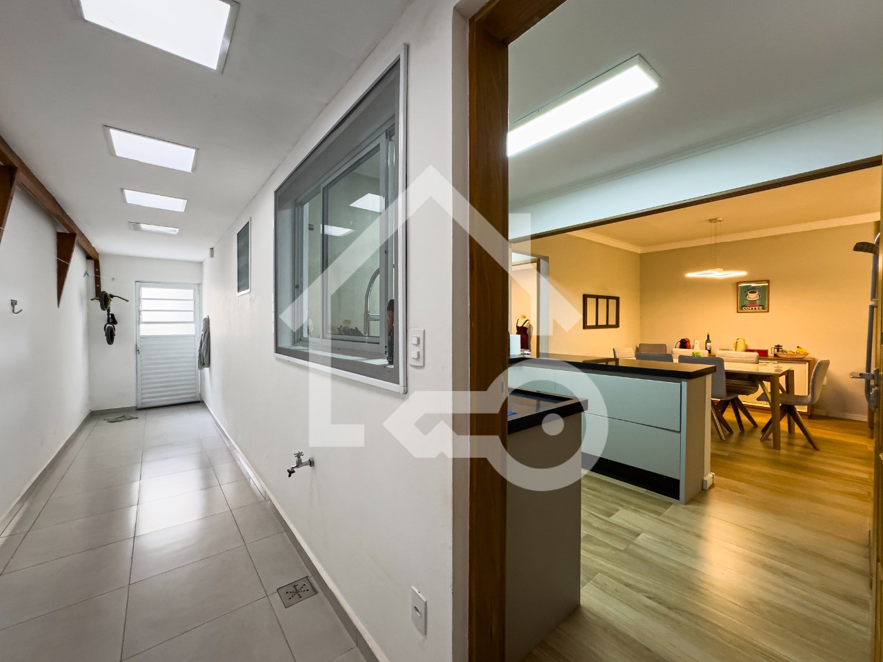 Sala em dois ambientes com lavabo.