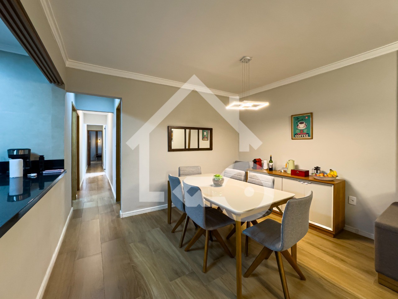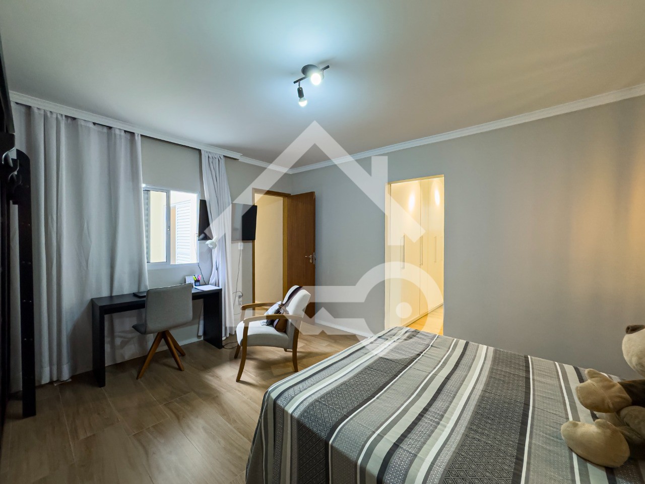 O imóvel possui 3 quartos, sendo 1 suíte com closet, 3 banheiros e 3 vagas de garagem.