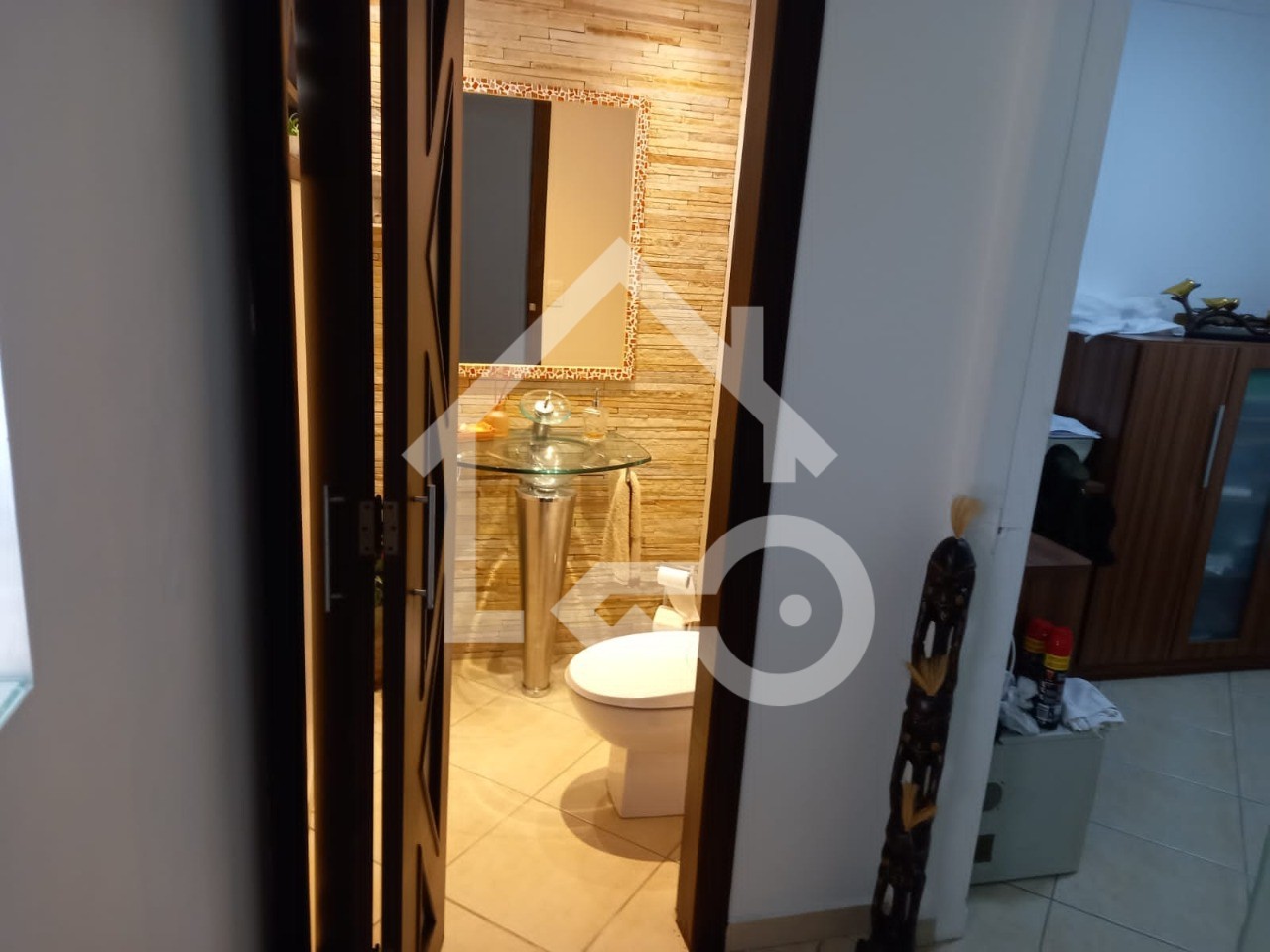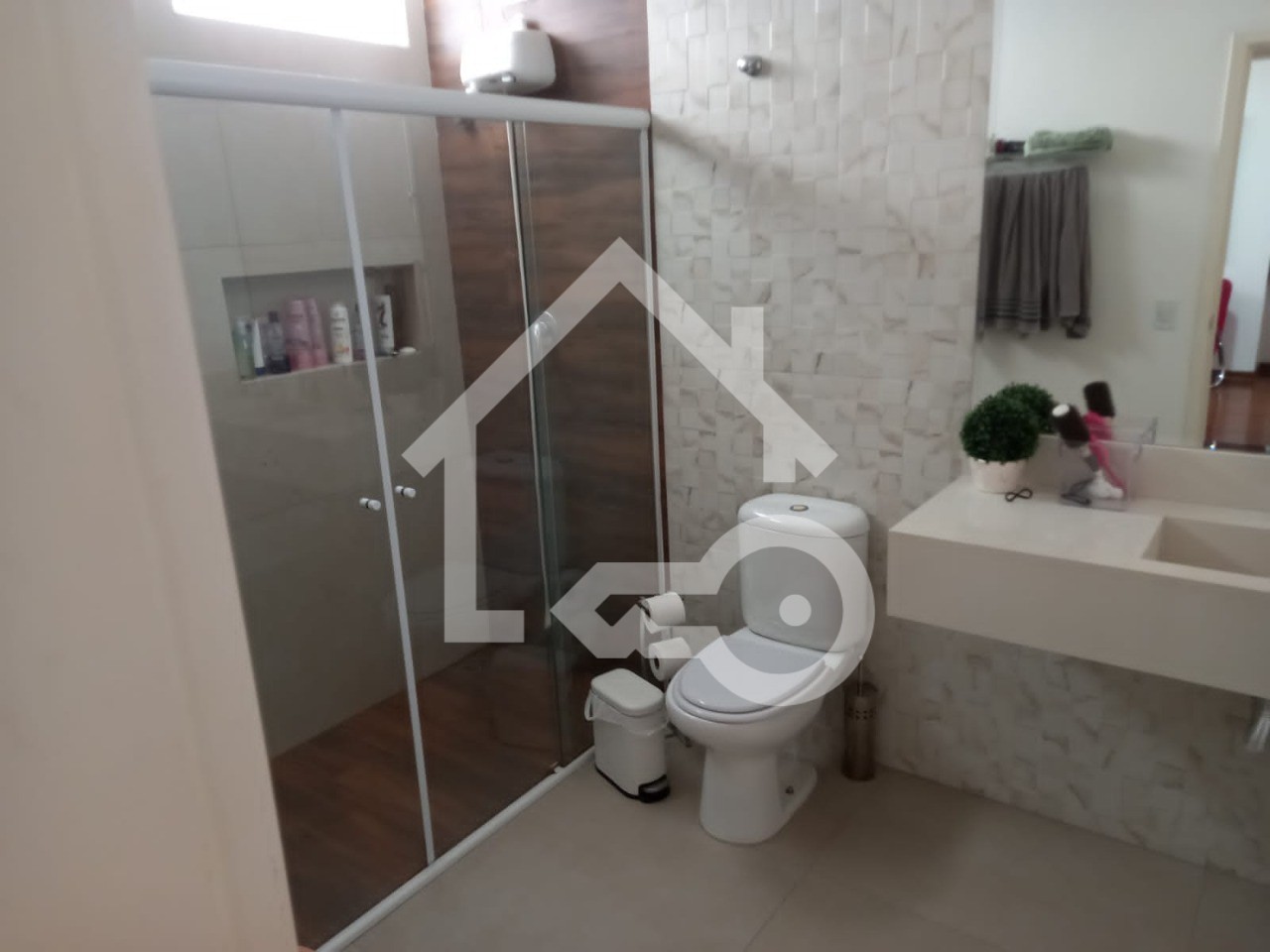 Banheiro Social com Box e Pia em Pedra;
