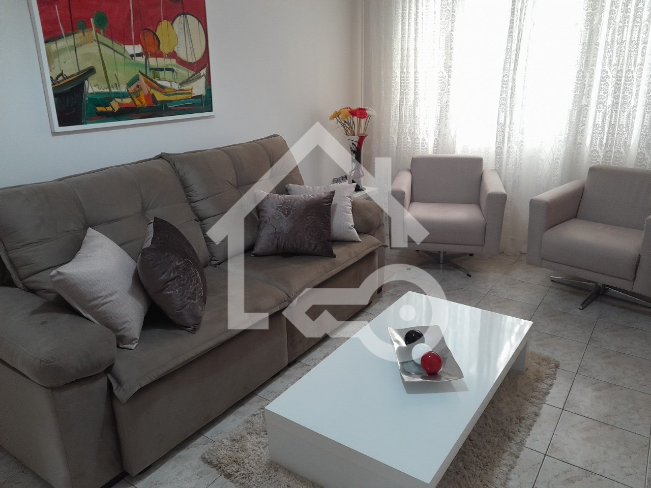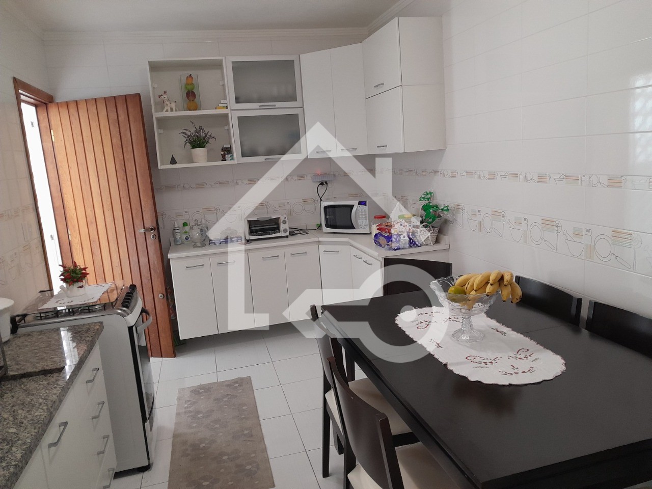 O imóvel possui 3 quartos, 2 banheiros e 4 vagas de garagem.
