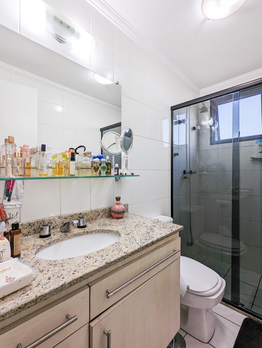 Banheiro com box em vidro.