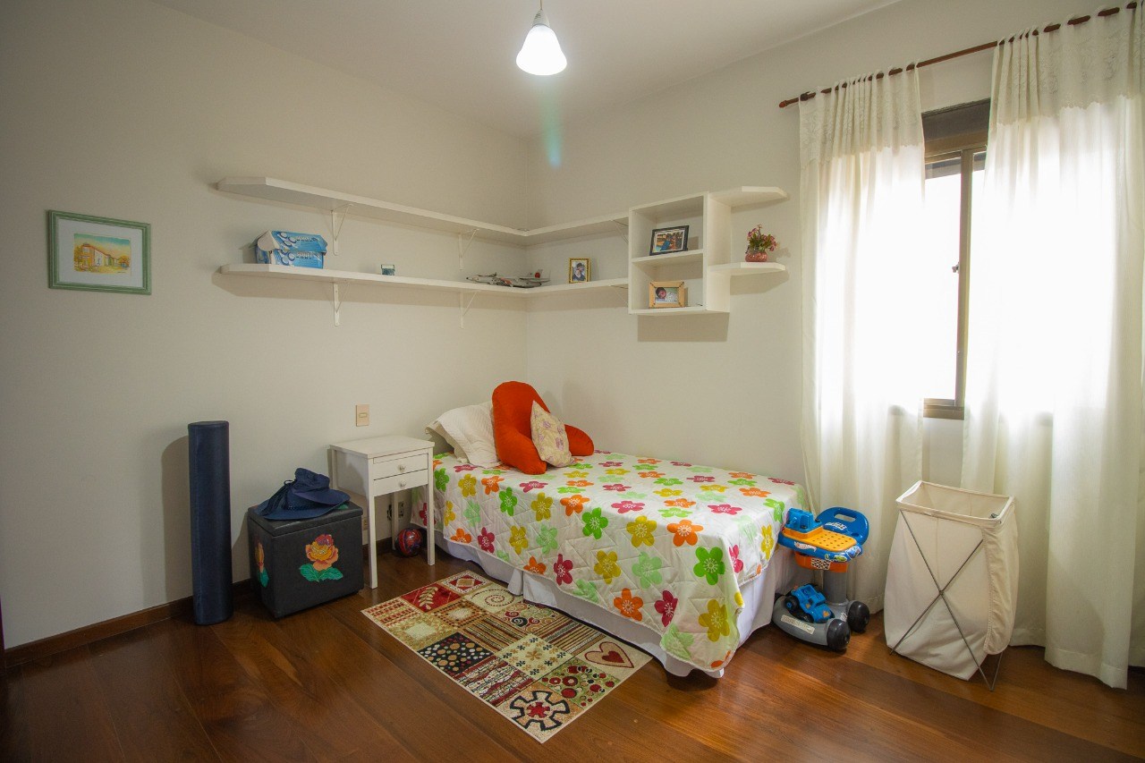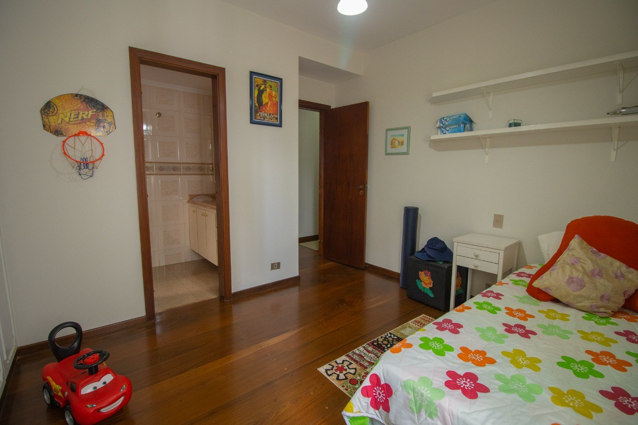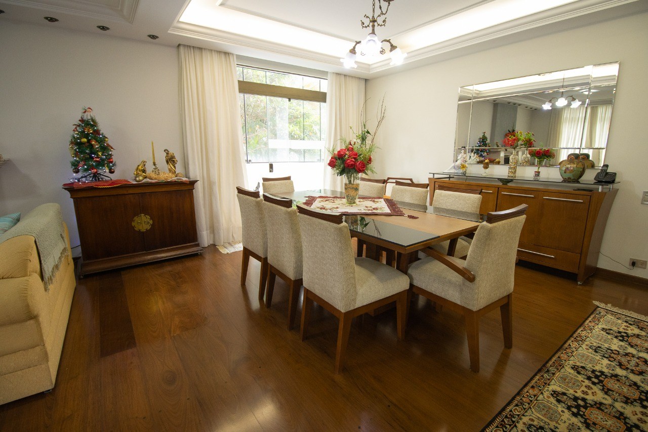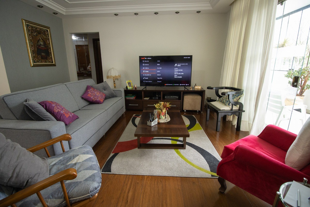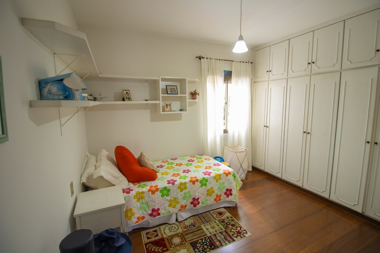O imóvel possui 4 quartos, sendo 2 suítes, 4 banheiros e 3 vagas de garagem cobertas.