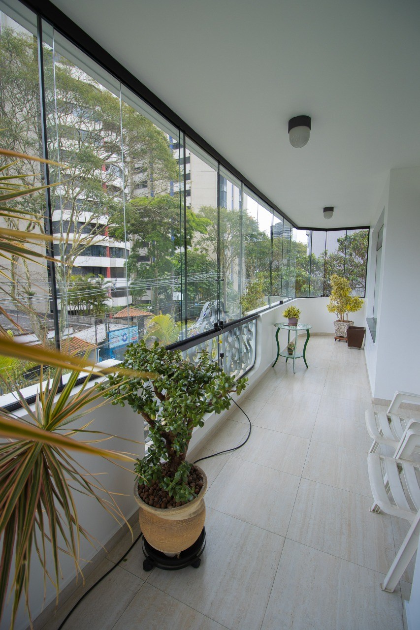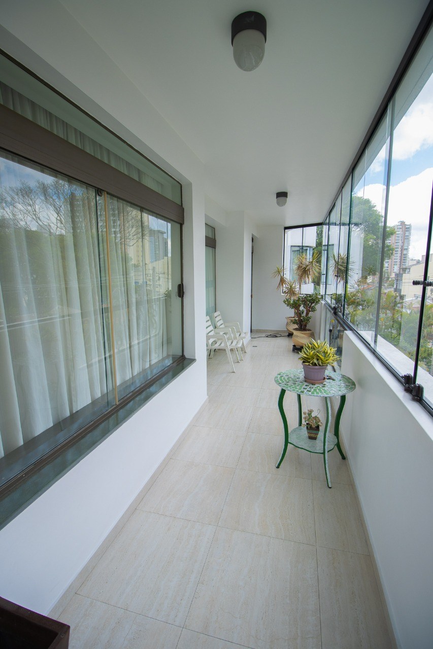 Varanda com fechamento em vidro.