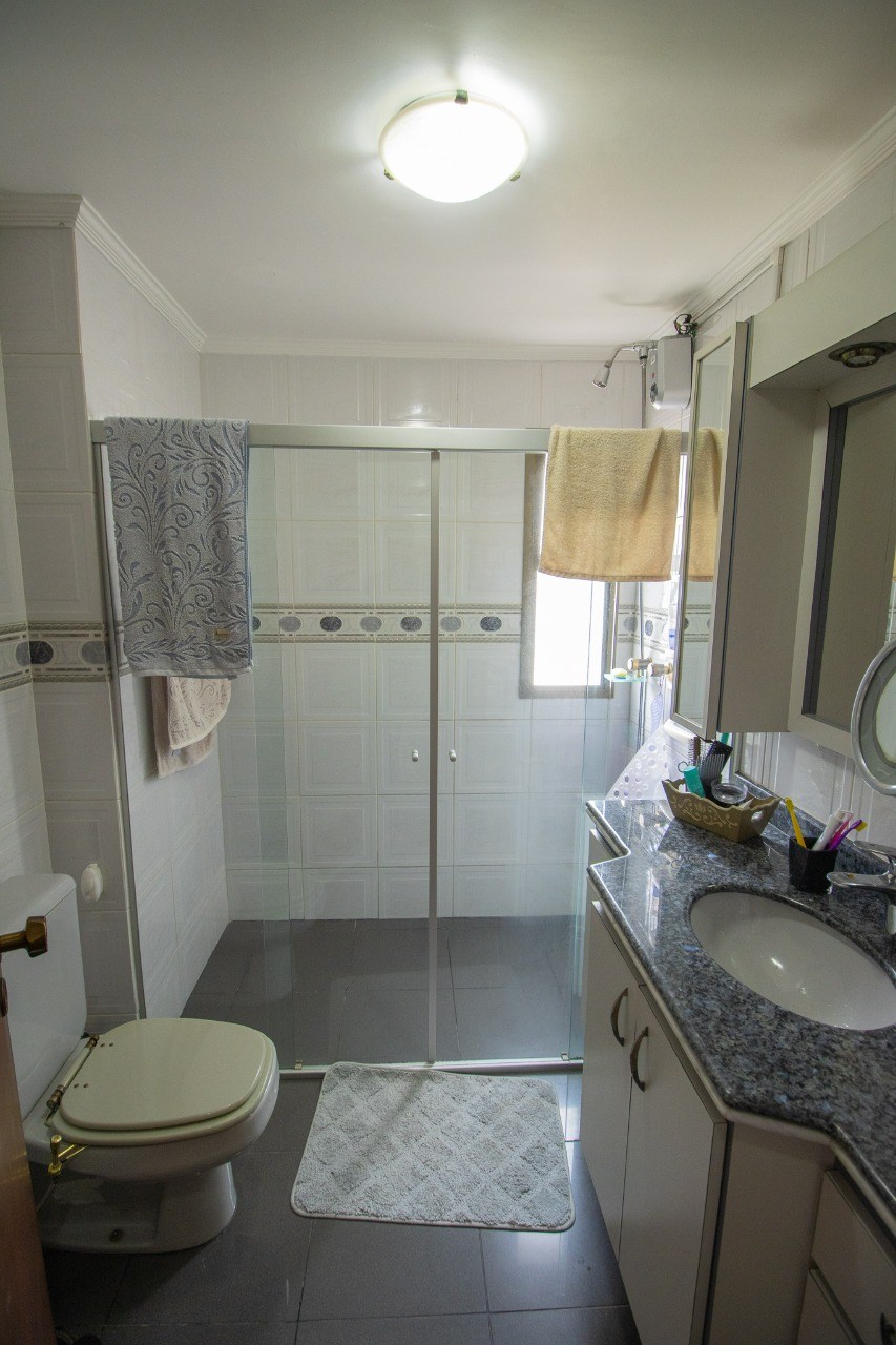 Banheiro com box em vidro.