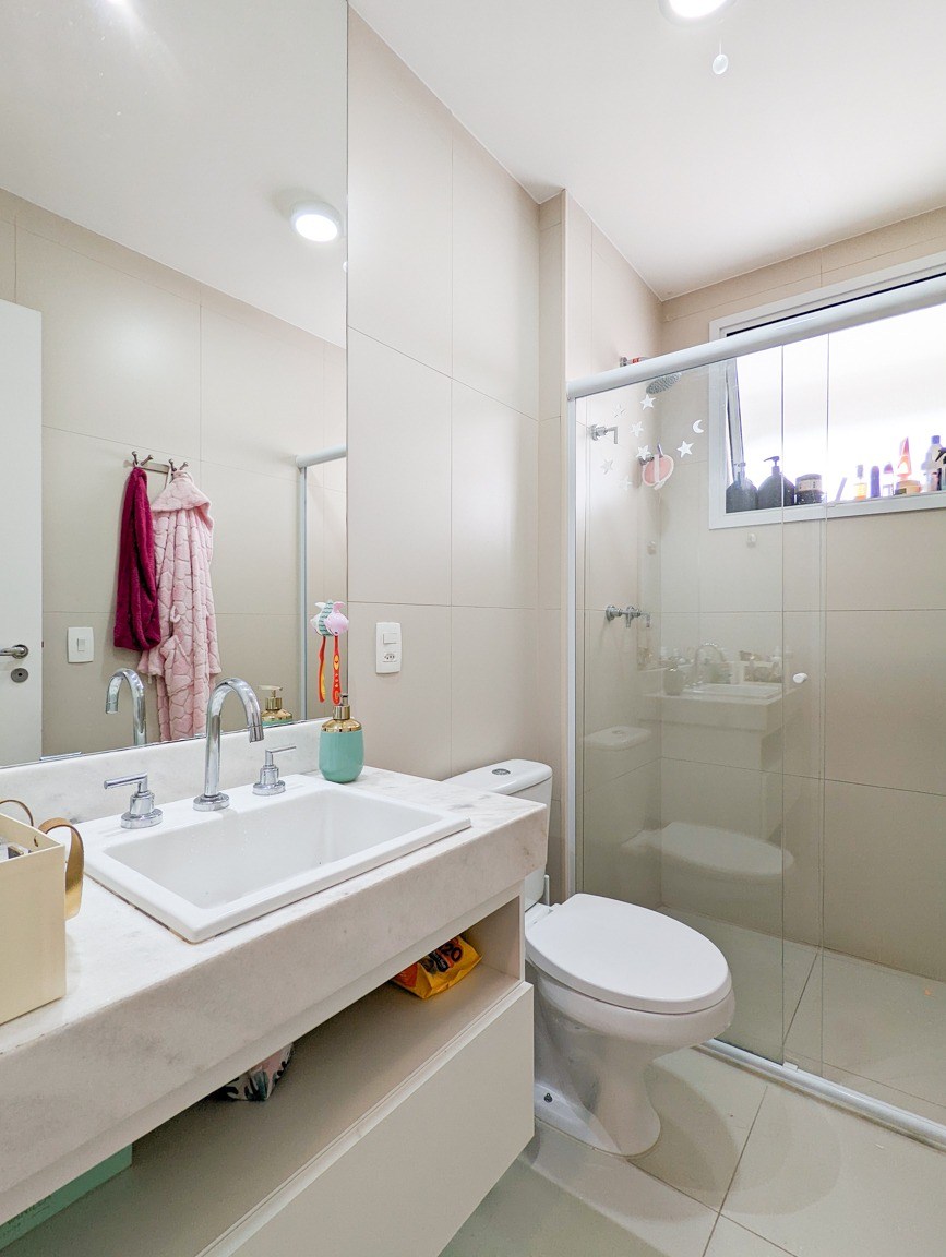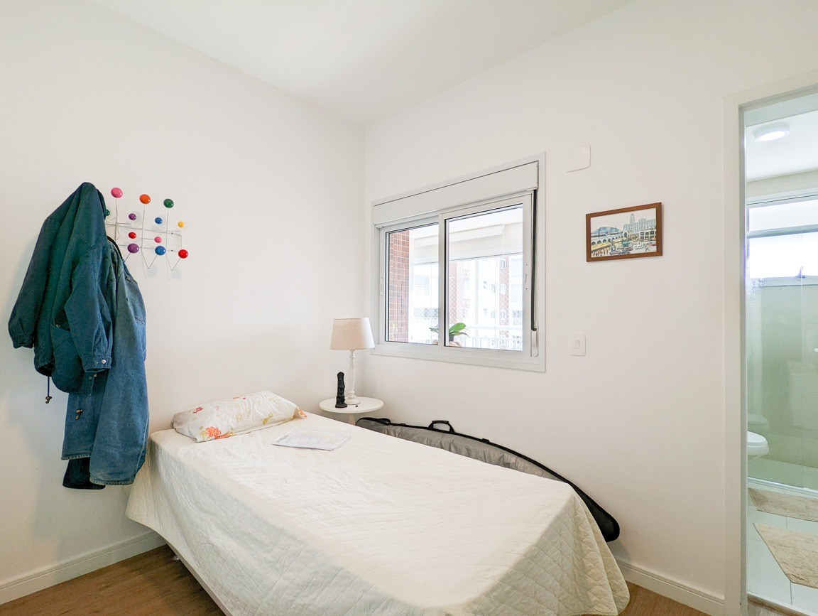 O imóvel possui 3 quartos, sendo todos suítes, 4 banheiros e 2 vagas de garagem coberta.